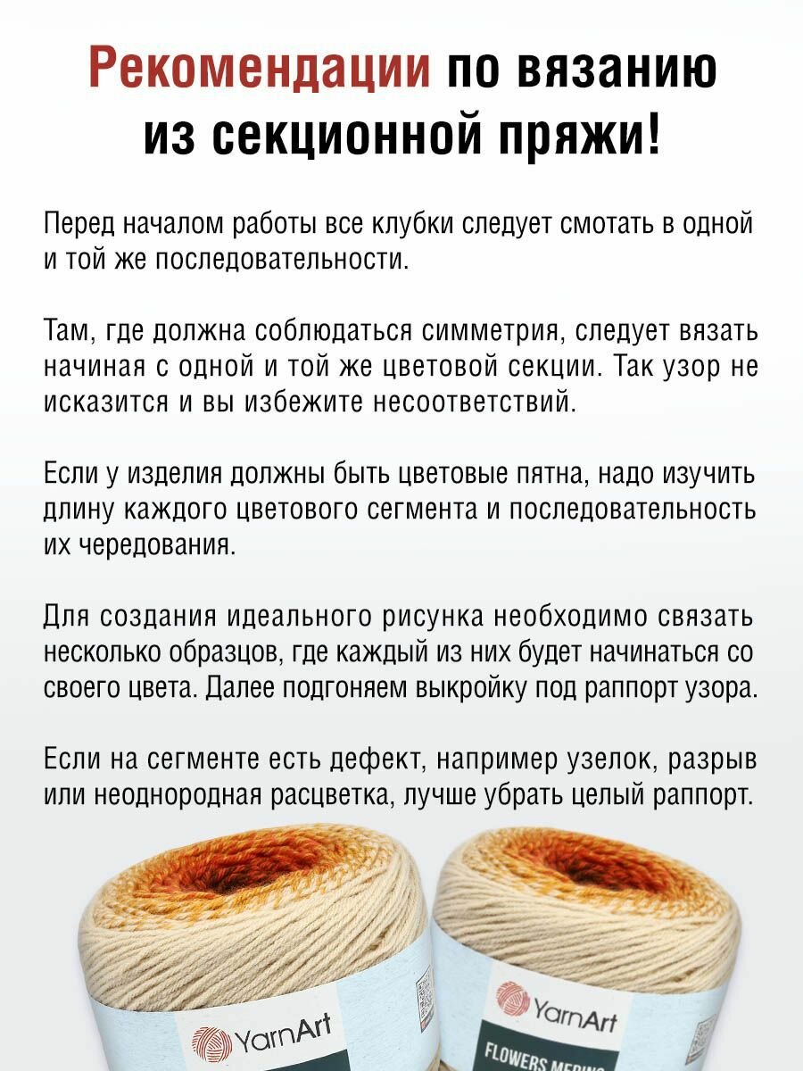 СохранитьПряжа YarnArt Flowers Merino (Фловерс Мерино) - 2 мотка цвет: 542 Оранжевый / беж 25% шерсть, 75% акрил 225г 590м интересное: