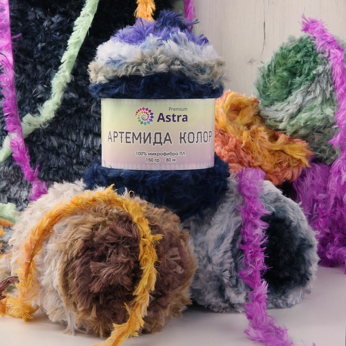 Пряжа Astra Premium "Артемида Колор", 150 гр 80 м, 100% микрофибра ПЛ, 01 фиолетовый секционный