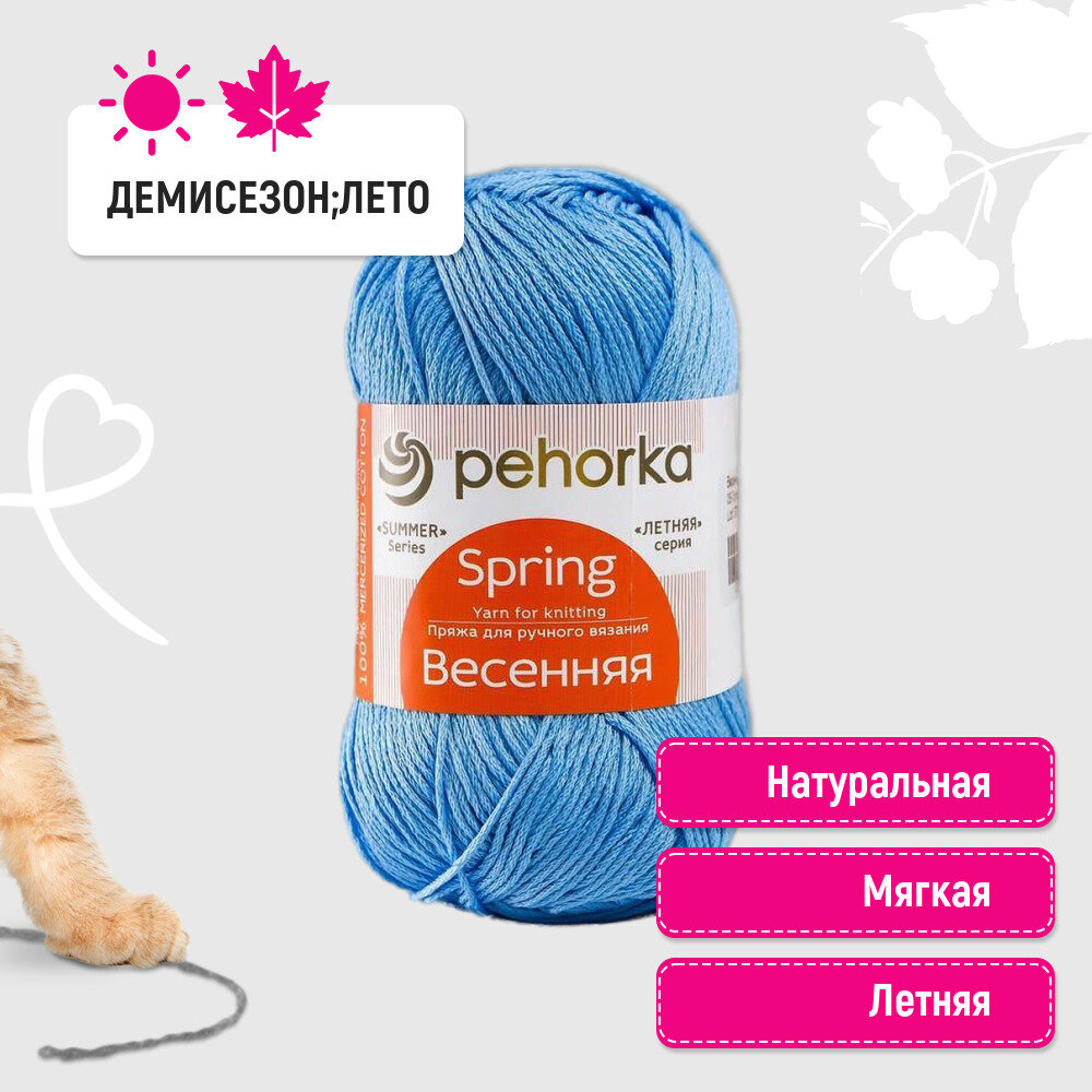 Пряжа Пехорка Весенняя голубой (005), 100%мерсеризованный хлопок, 250м, 100г, 1шт