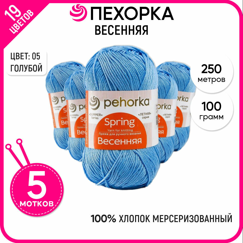 Купить Пряжа для вязания Пехорка 'Весенняя', 100г, 250м (100% мерсеризованный хлопок) (05-Голубой), 5 мотков