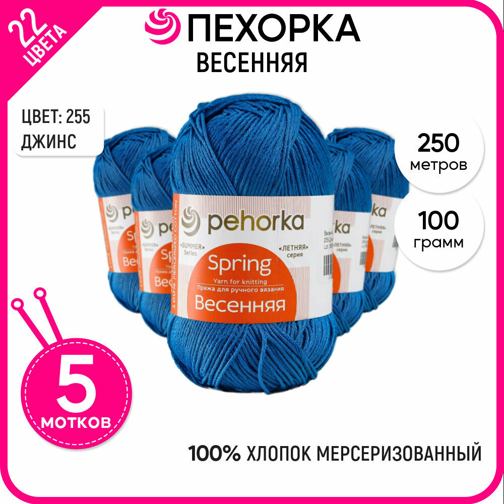 Пряжа для вязания Пехорка 'Весенняя' 100г, 250м (100% мерсеризованный хлопок) (255-Джинсовый), 5 мотков