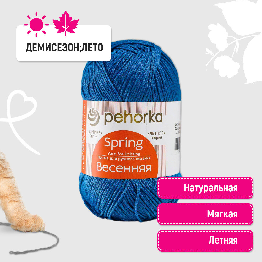 Пряжа Пехорка Весенняя, 100% хлопок мерсериированный, 255-Джинсовый, 100 гр. 250 м, 1 шт/упак