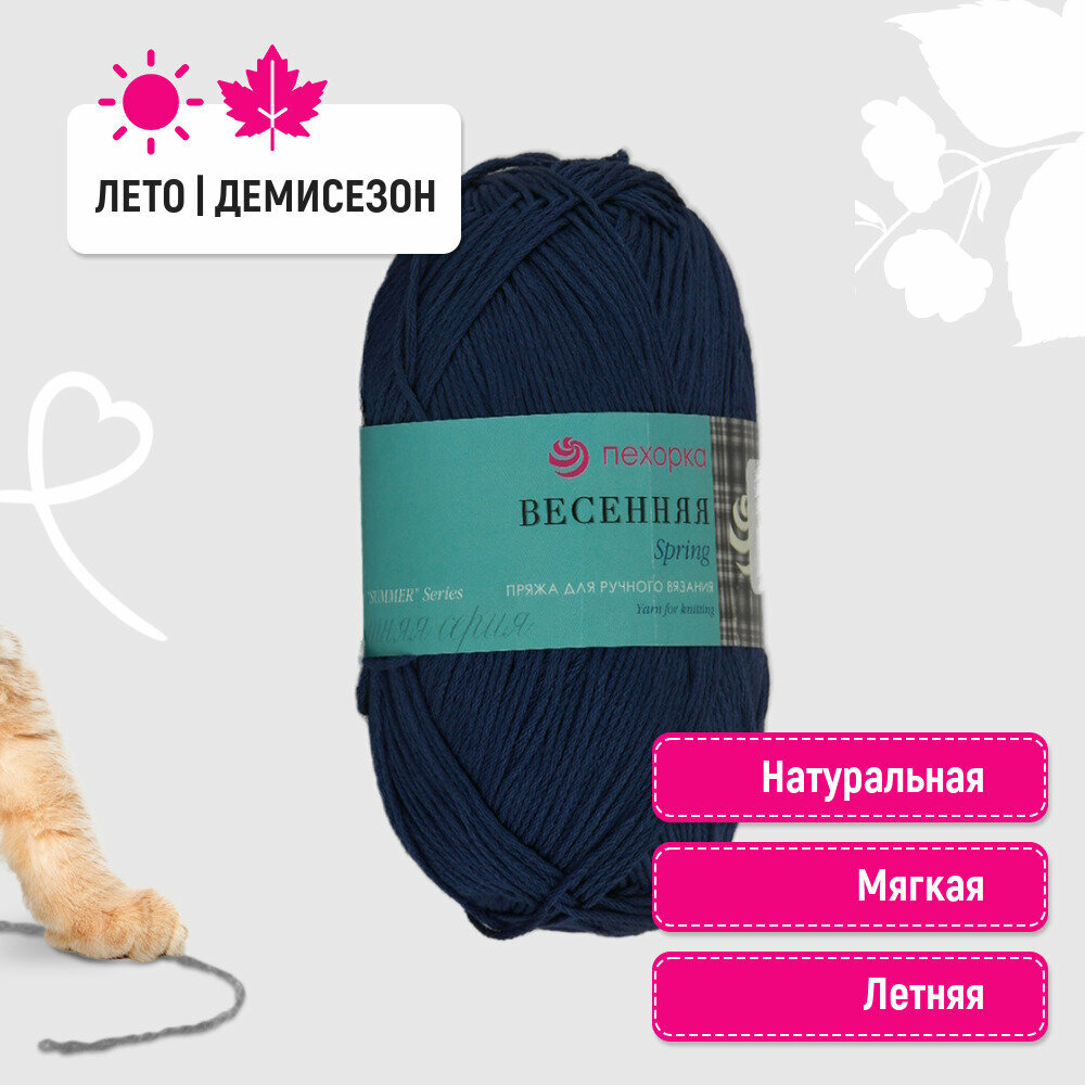 Пряжа Пехорка Весенняя темно-синий (004), 100%мерсеризованный хлопок, 250м, 100г, 1шт