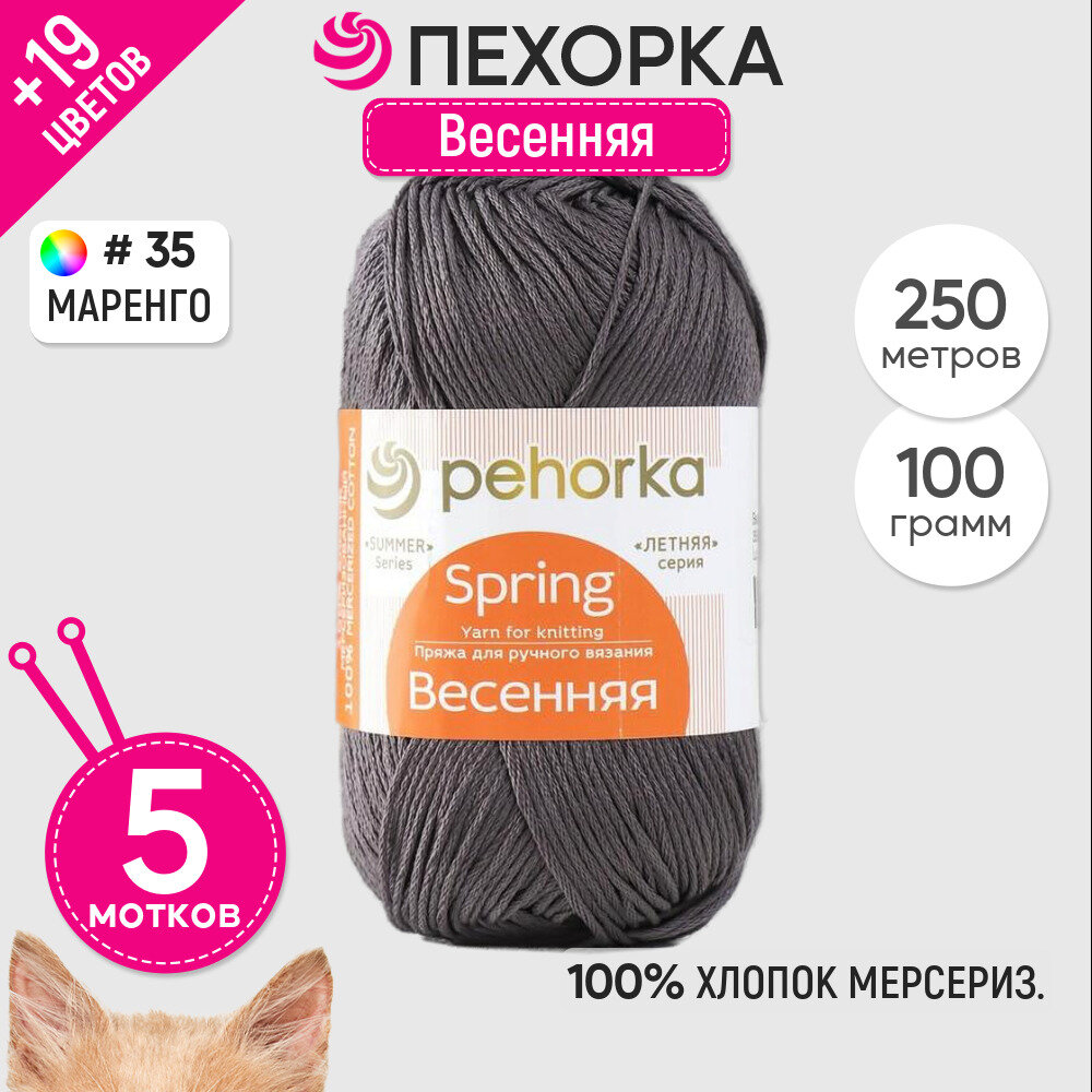 Пряжа для вязания Пехорка 'Весенняя', 100г, 250м (100% мерсеризованный хлопок) (35-маренго), 5 мотков