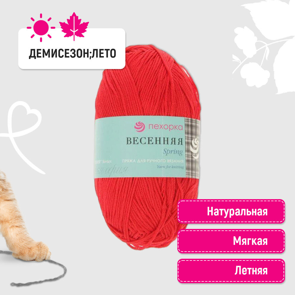 Пряжа Пехорка Весенняя красный (006), 100%мерсеризованный хлопок, 250м, 100г, 1шт