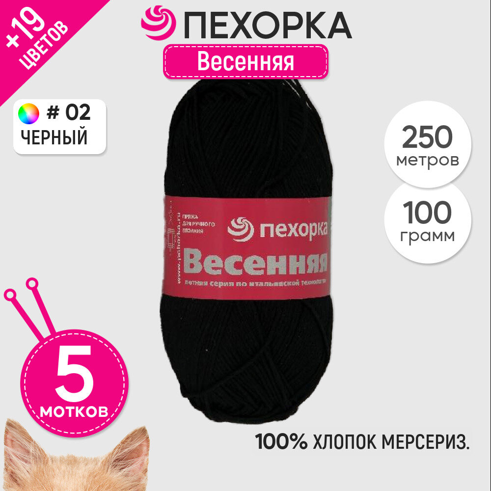 Пряжа для вязания Пехорка 'Весенняя', 100г, 250м (100% мерсеризованный хлопок) (02-Черный), 5 мотков