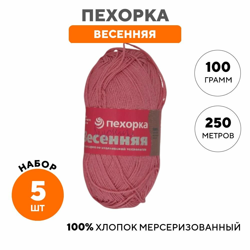 Пряжа Весенняя (Пехорка), Рябина - 250, 100% мерсеризованный хлопок, 5 мотков, 100 г, 250 м.