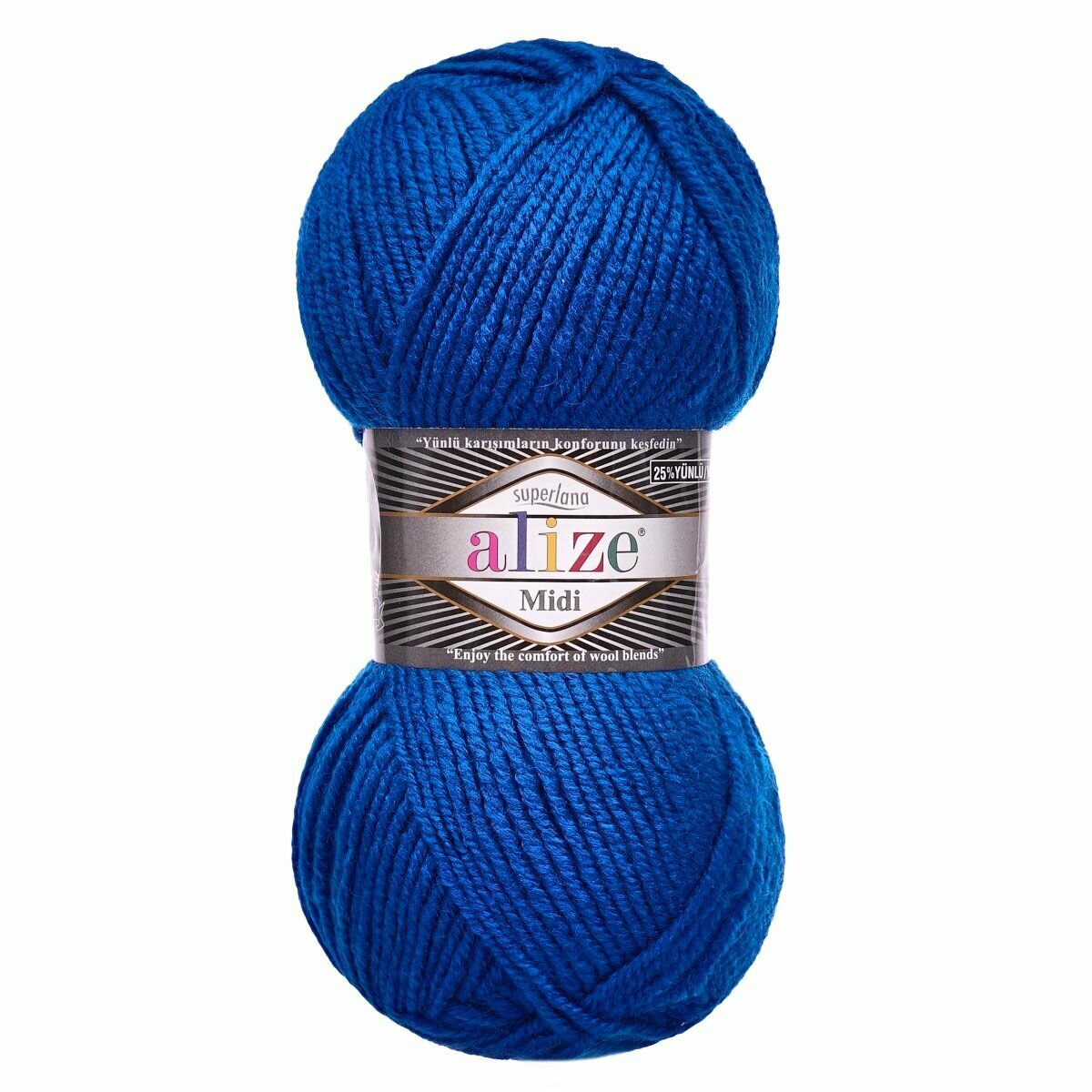 Пряжа Alize Superlana midi (Ализе Суперлана миди) - 1 моток 141 Васильковый, 75% акрил 25% шерсть, 170м/100г
