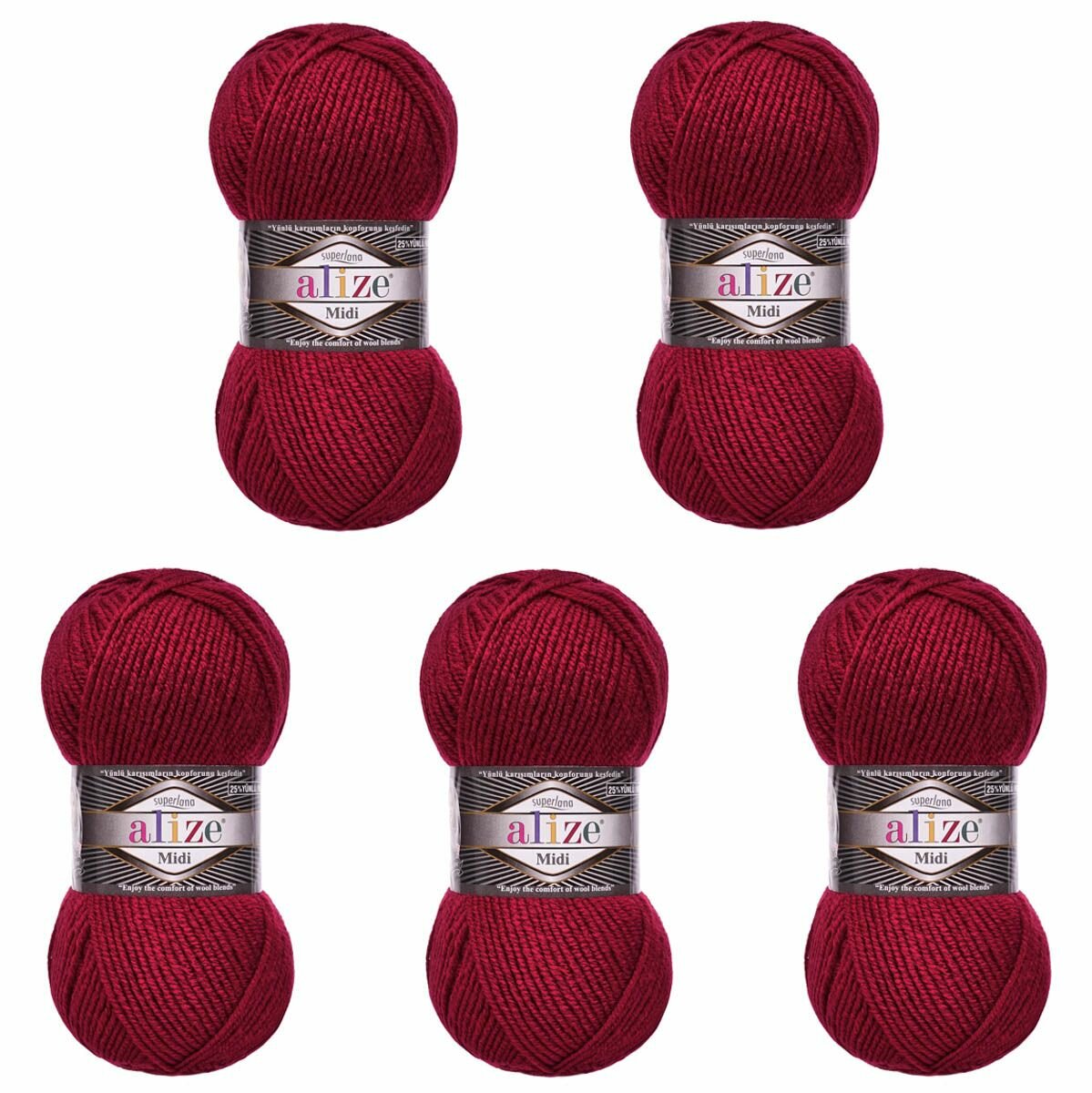 Пряжа ALIZE "SUPERLANA MIDI", 100 гр 170 м, 25% шерсть, 75% акрил, 57 бордовый, 5 шт