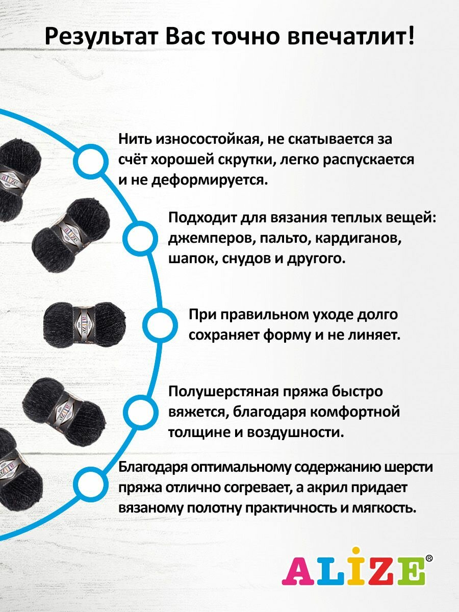 СохранитьПряжа для вязания ALIZE 'Superlana MIDI', 100г, 170м (25% шерсть, 75% акрил) (800 антрацитовый жаспе), 5 мотков интересное: