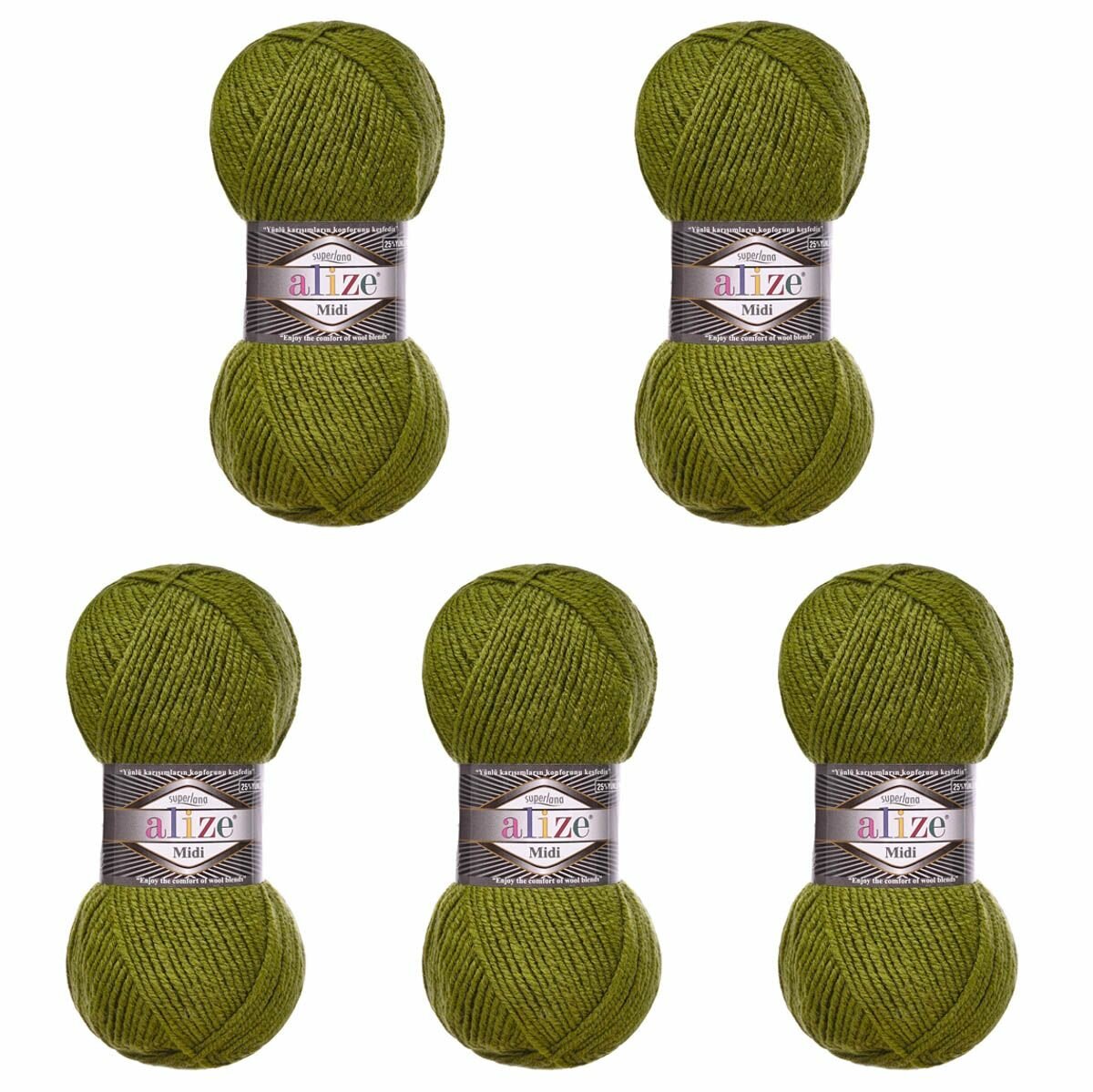 Пряжа ALIZE SUPERLANA MIDI, оливковый - 620, 25% шерсть, 75% акрил, 5 мотков, 100 г, 170 м.