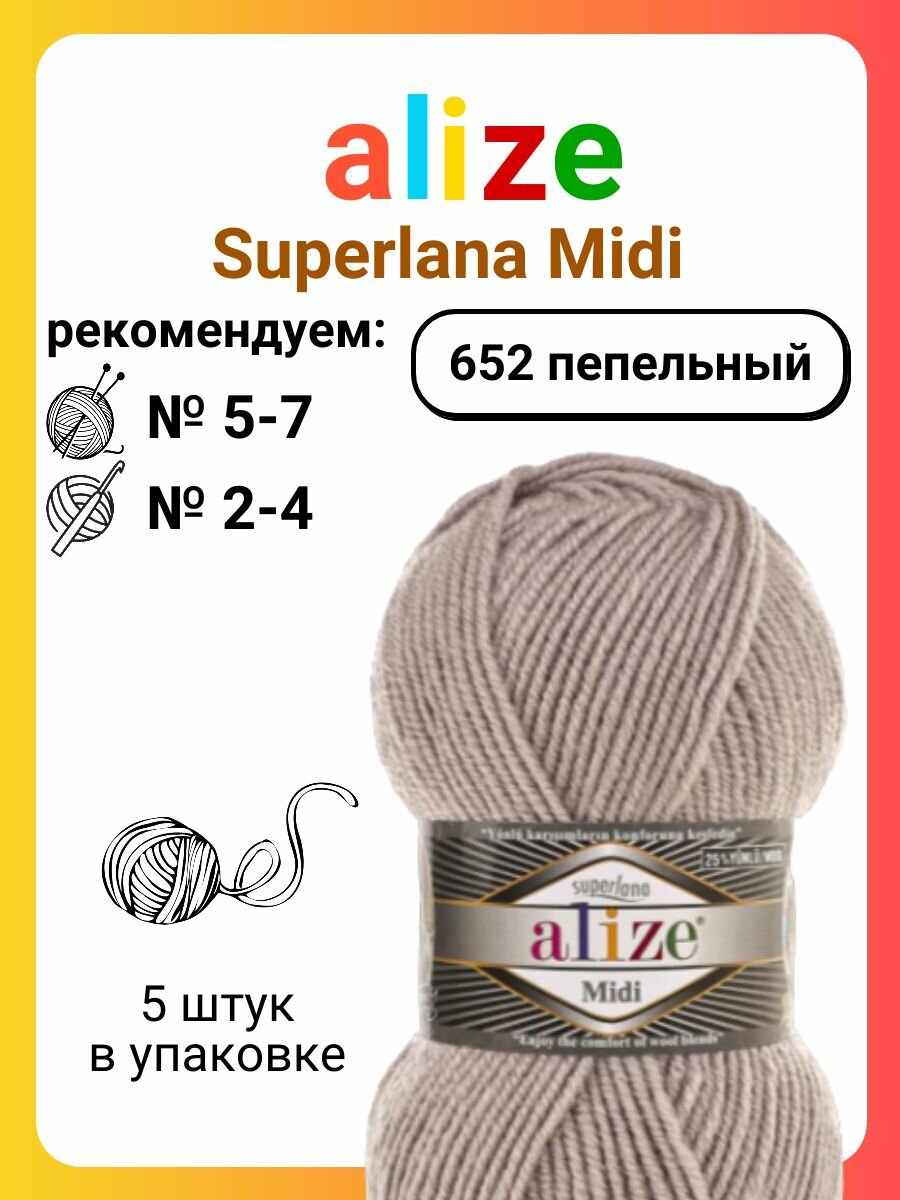 Купить Пряжа Alize Superlana Midi 652 пепельный, 100 г, 170 м, 5 штук