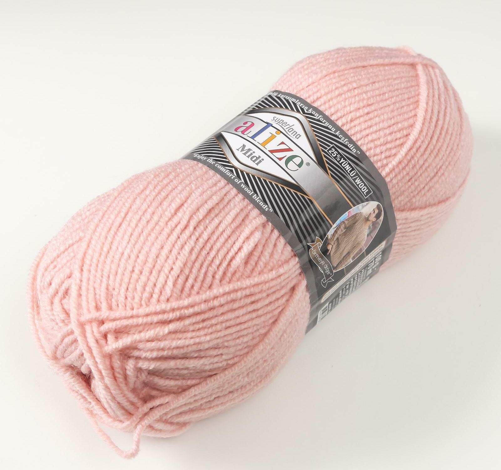 Пряжа ALIZE SUPERLANA MIDI, пудра - 161, 25% шерсть, 75% акрил, 5 мотков, 100 г, 170 м.