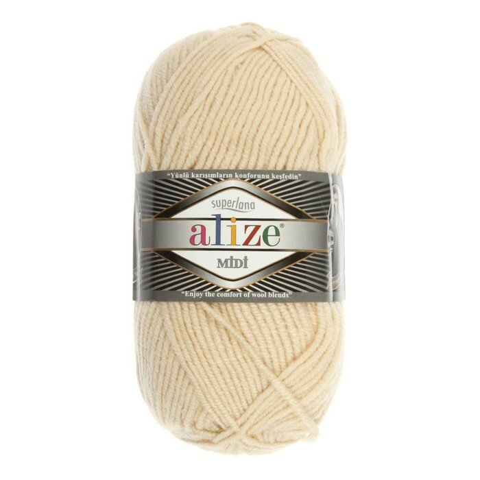 Пряжа Alize Superlana Midi слоновая кость (599), 25%шерсть/75%акрил, 170м, 100г, 1шт