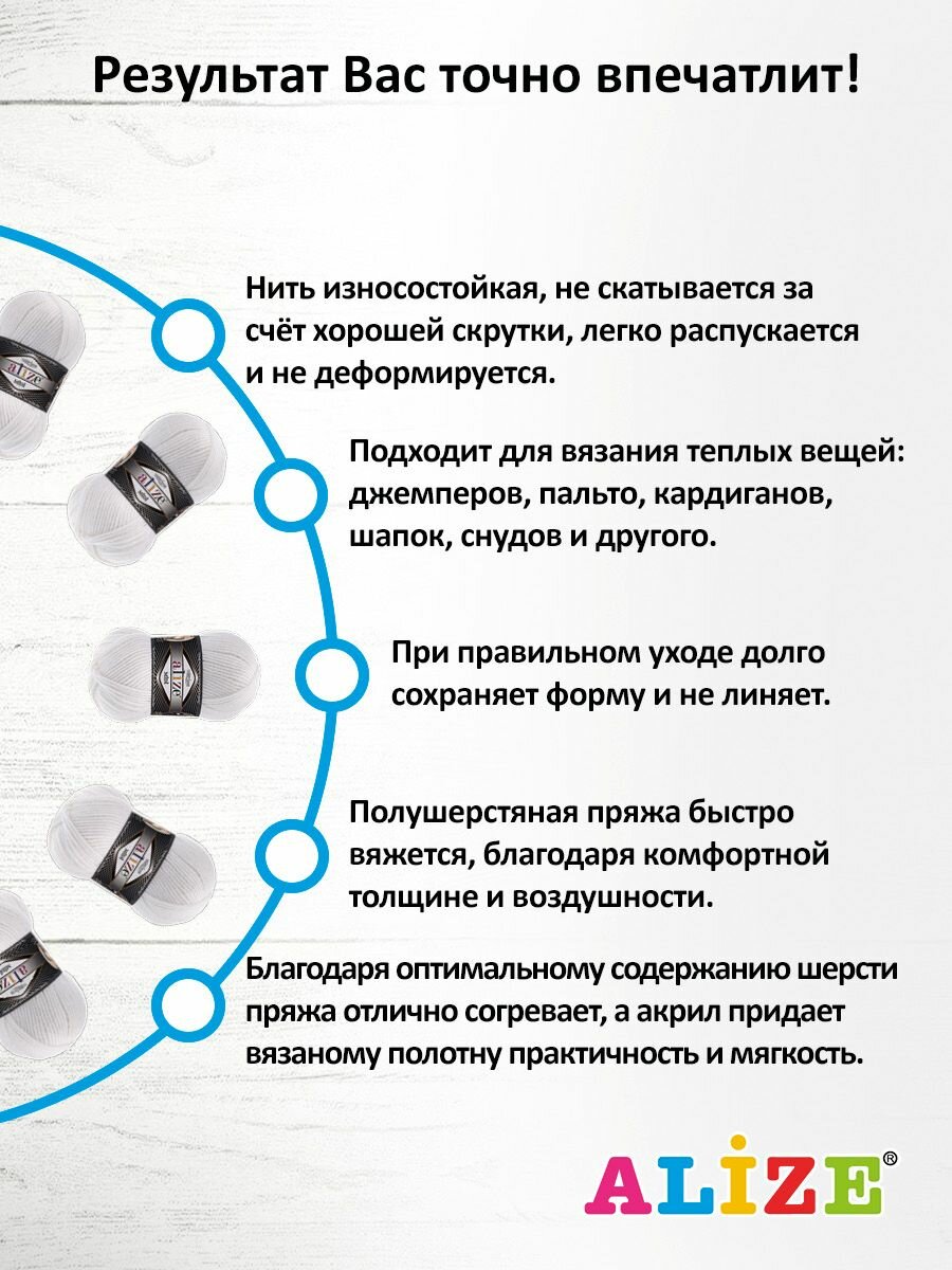 СохранитьПряжа ALIZE SUPERLANA MIDI, белый - 55, 25% шерсть, 75% акрил, 5 мотков, 100 г., 170 м. интересное:
