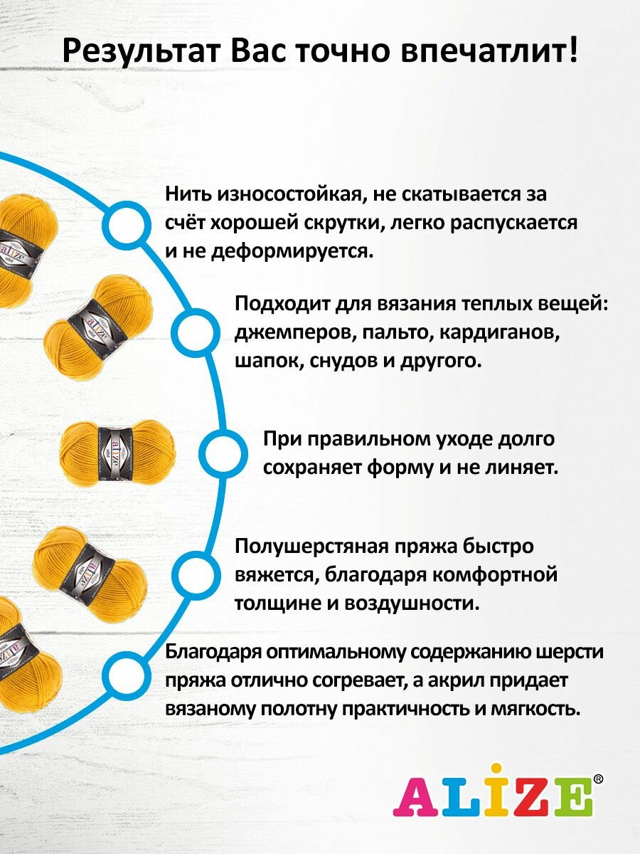 СохранитьПряжа для вязания ALIZE 'Superlana MIDI', 100г, 170м (25% шерсть, 75% акрил) (488 желтый), 5 мотков интересное: