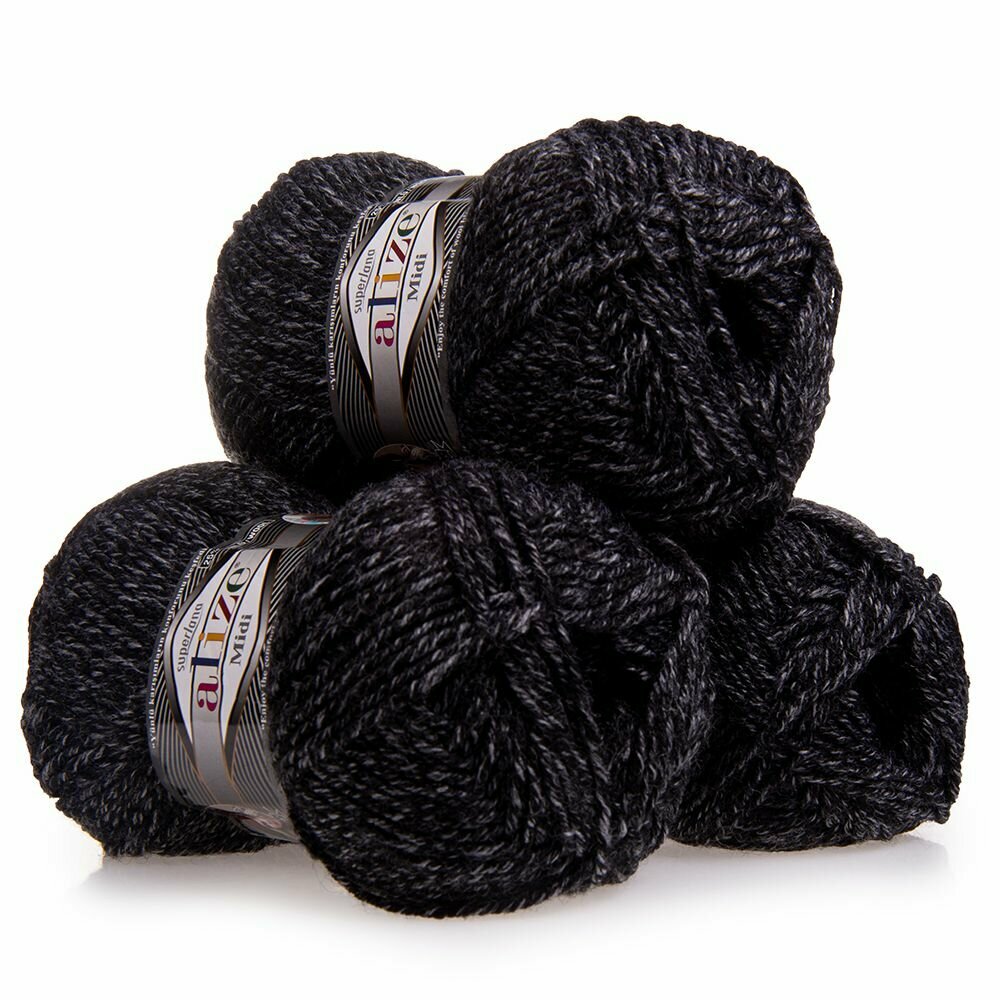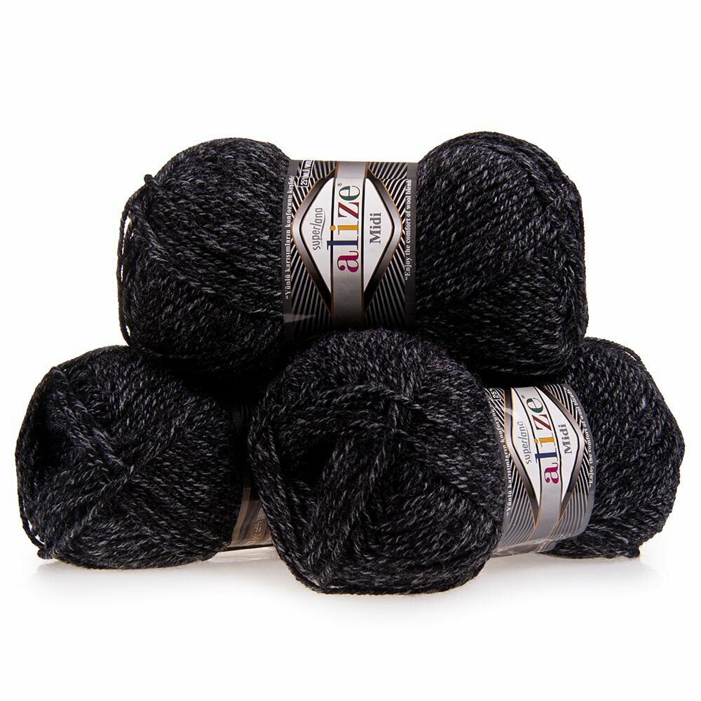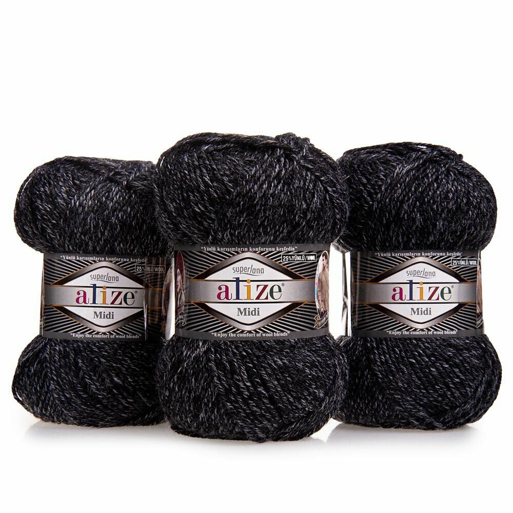 Купить Пряжа Alize Superlana Midi антрацитовый меланж (800), 25%шерсть/75%акрил, 170м, 100г, 3шт
