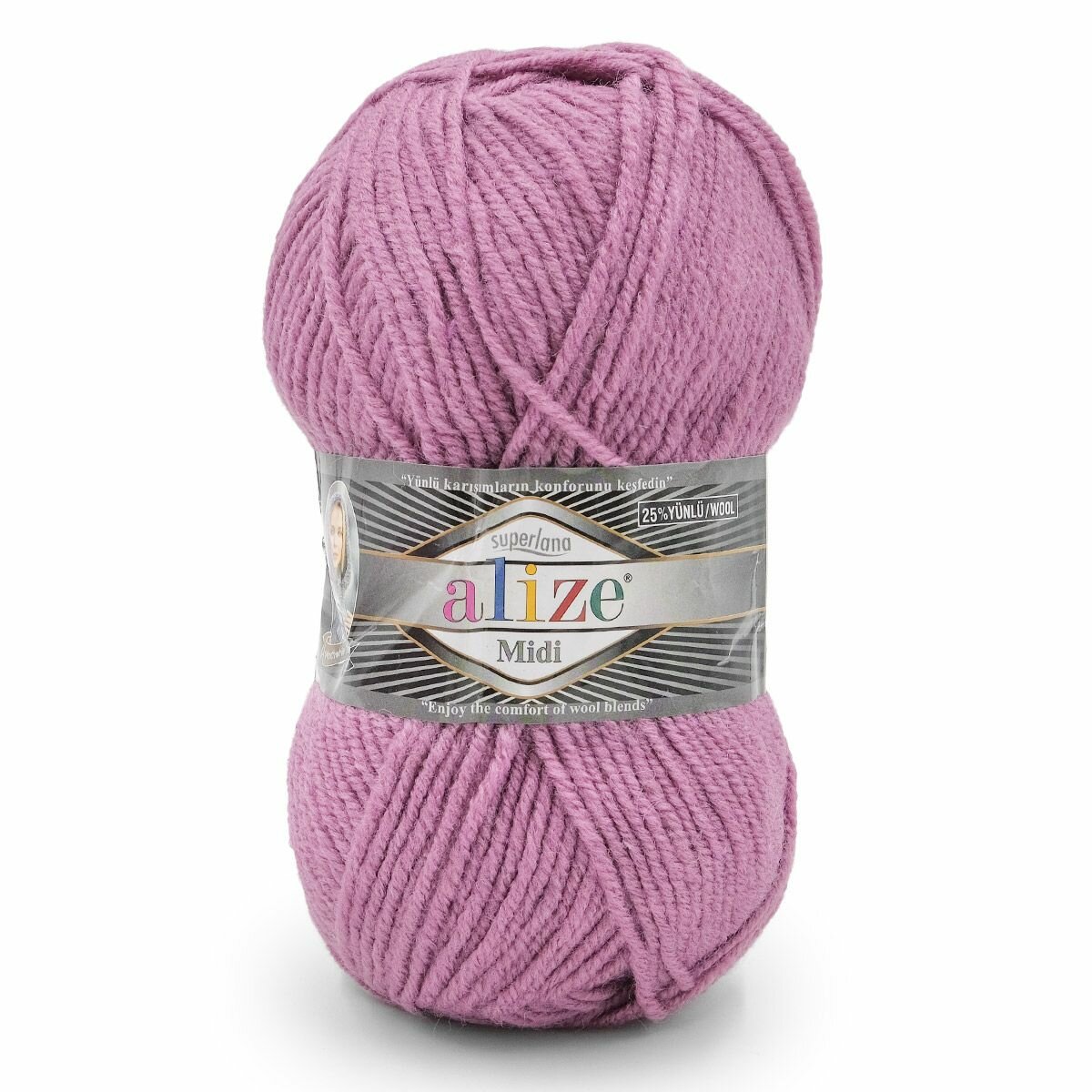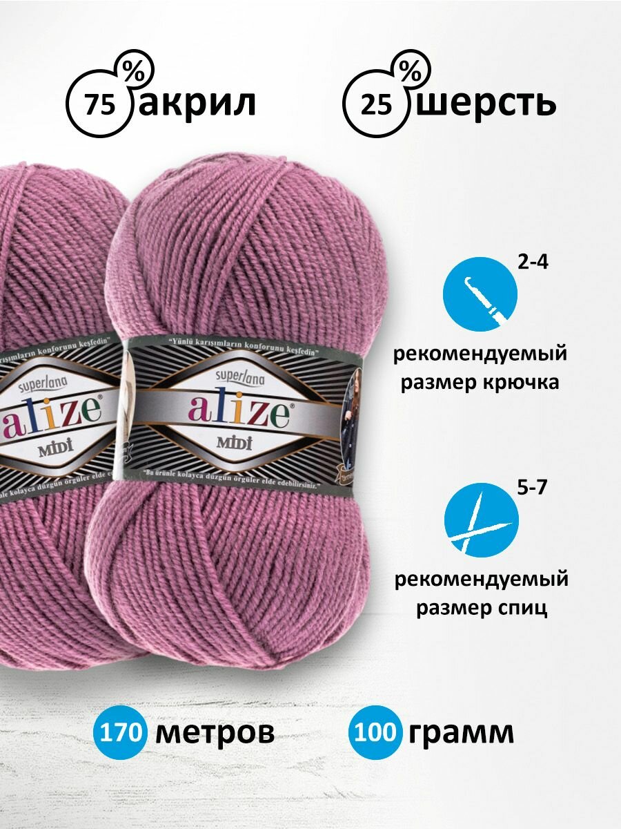 Пряжа Alize Superlana Midi пыльно-сиреневый (505), 25%шерсть/75%акрил, 170м, 100г, 1шт