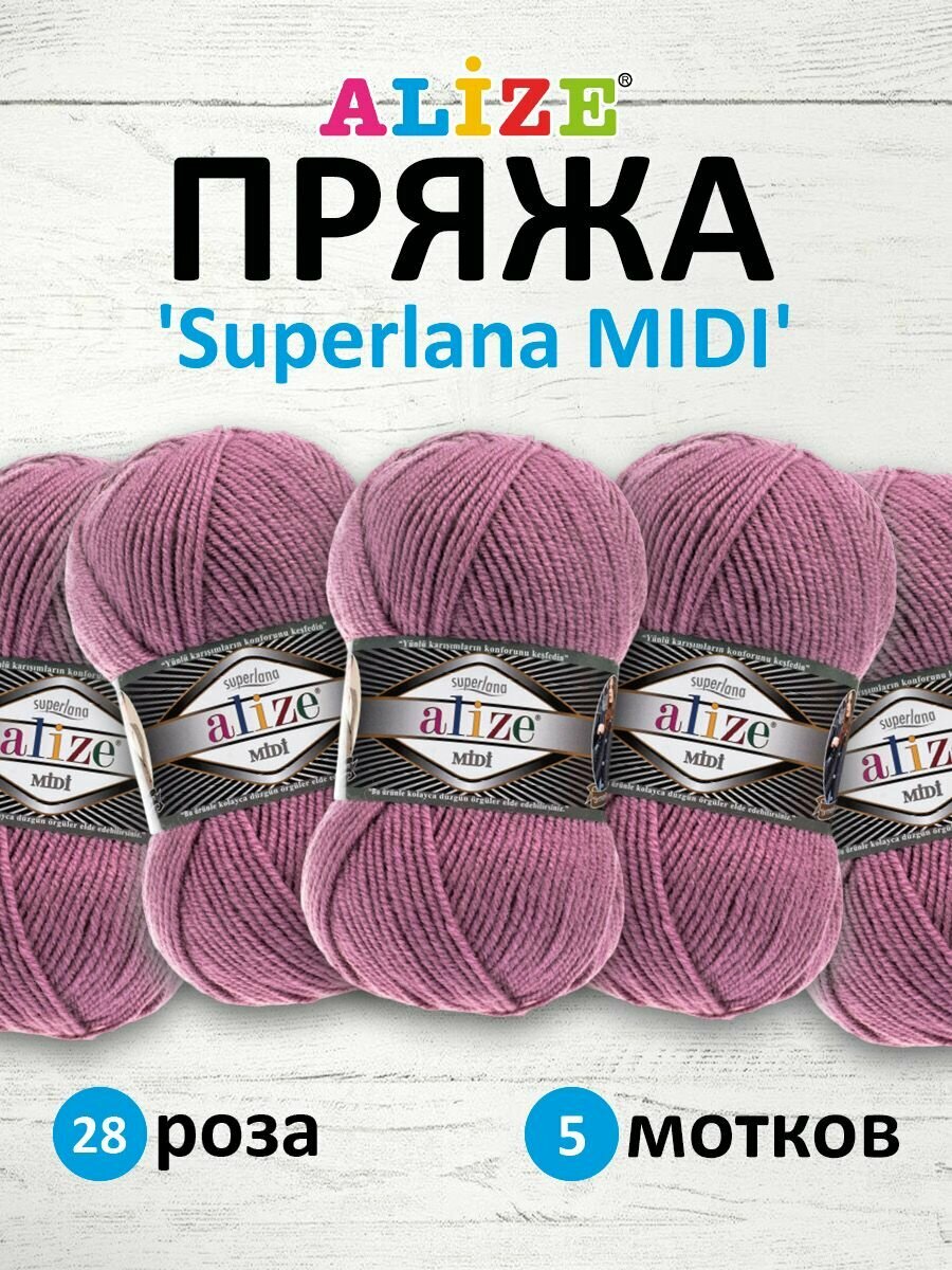 Купить Пряжа Alize Superlana Midi ярко-сухая роза (28), 25%шерсть/75%акрил, 170м, 100г, 5шт