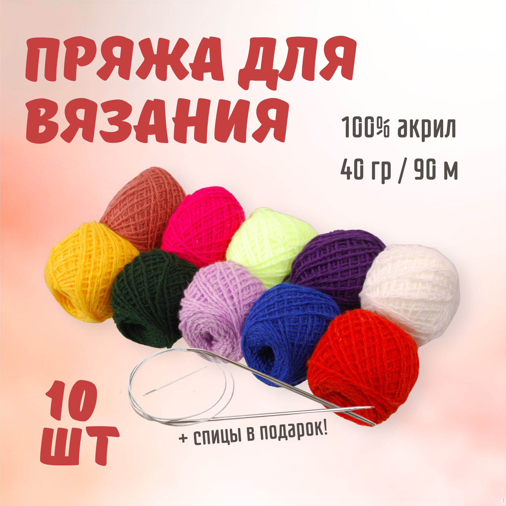 Купить Набор пряжи для вязания ALPI №2 (пряжа 100% акрил 10 мотков + спицы для вязания круговые) вес 400 грамм