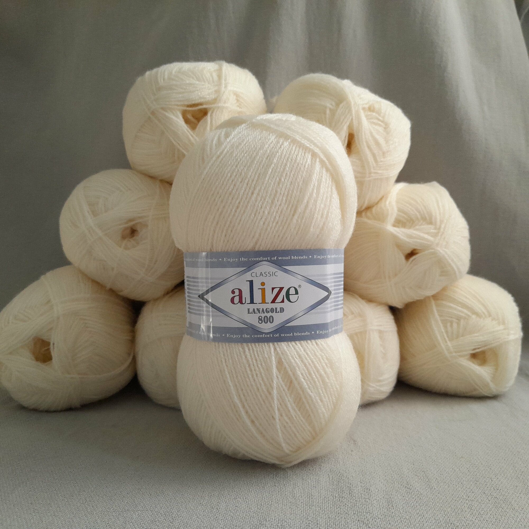 Пряжа Alize Lanagold 800 (Ланаголд 800) - 5 мотков Цвет: 62 молочный (Ланаголд 800) 49% шерсть, 51% акрил 100г 730м