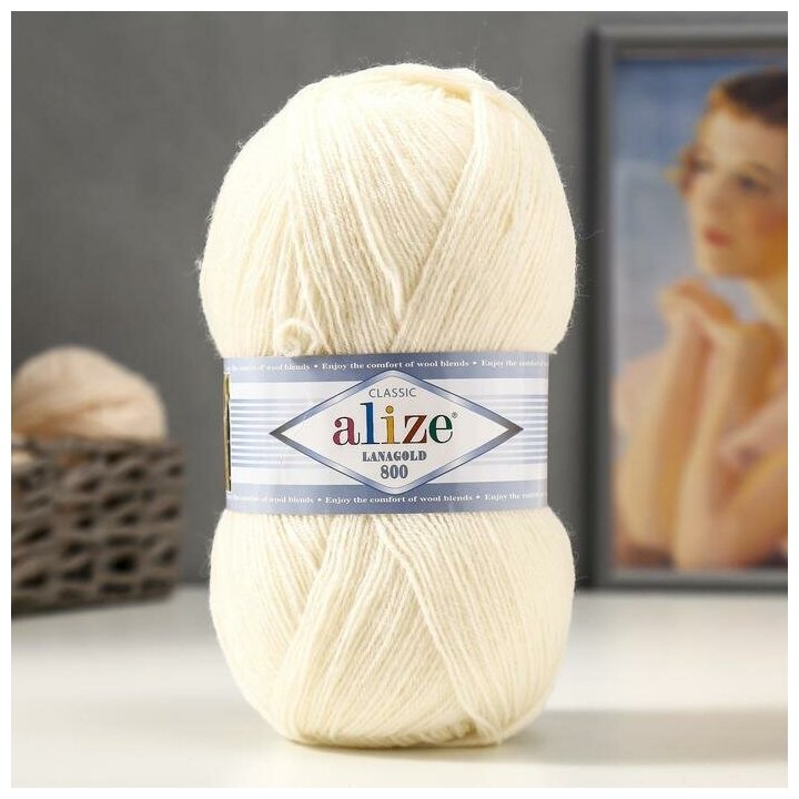 Пряжа Alize Lanagold 800 (Ланаголд 800) - 1 моток Цвет: 62 молочный 49% шерсть, 51% акрил 100г 730м