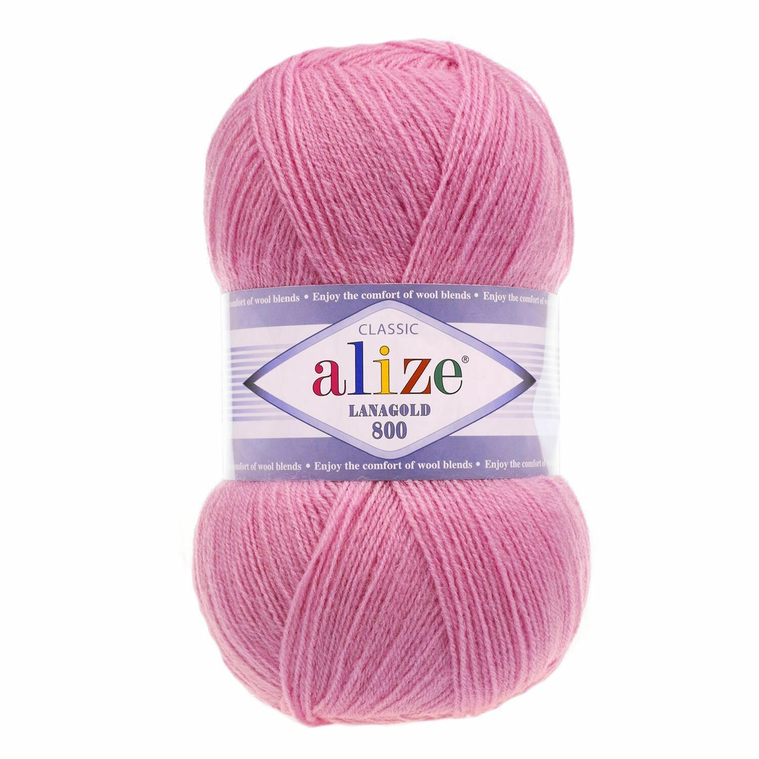 Пряжа Alize Lanagold 800 (Ланаголд 800) - 1 моток Цвет: 28 роза 49% шерсть, 51% акрил 100г 730м