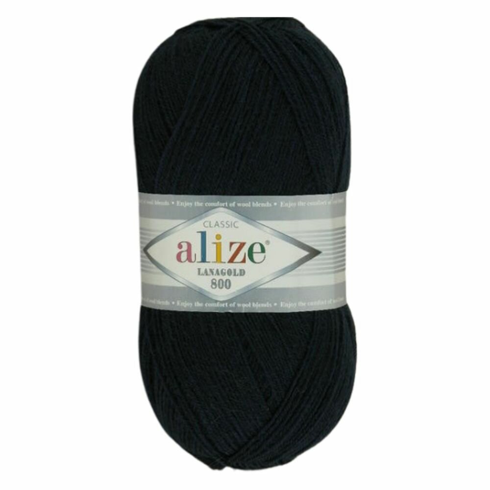 Пряжа Alize Lanagold 800 (Ланаголд 800) - 5 мотков Цвет: 60 черный (Ланаголд 800) 49% шерсть, 51% акрил 100г 730м