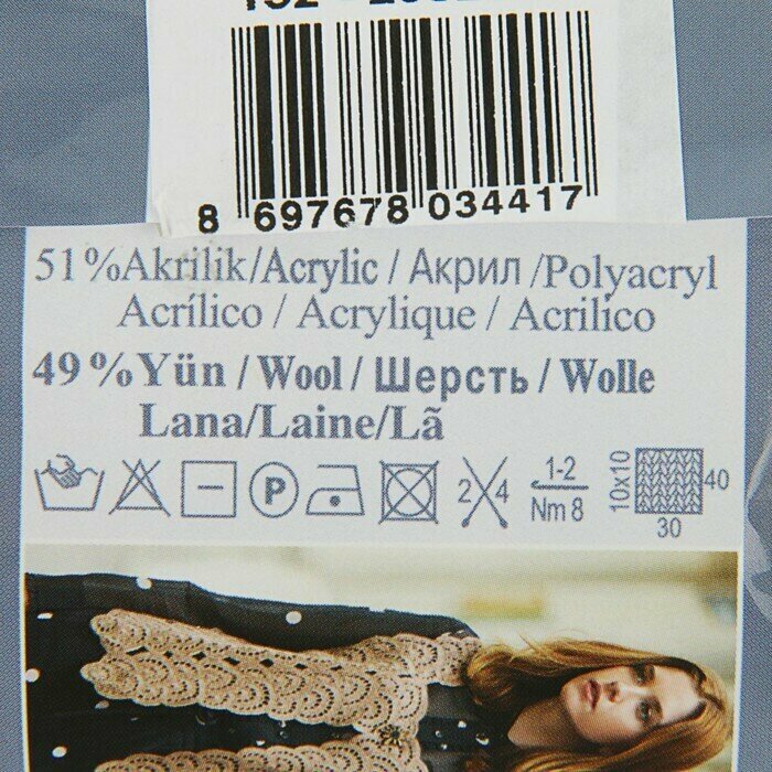 Пряжа Alize Lanagold 800 (Ланаголд 800) - 1 моток Цвет: 450 жемчужный 49% шерсть, 51% акрил 100г 730м