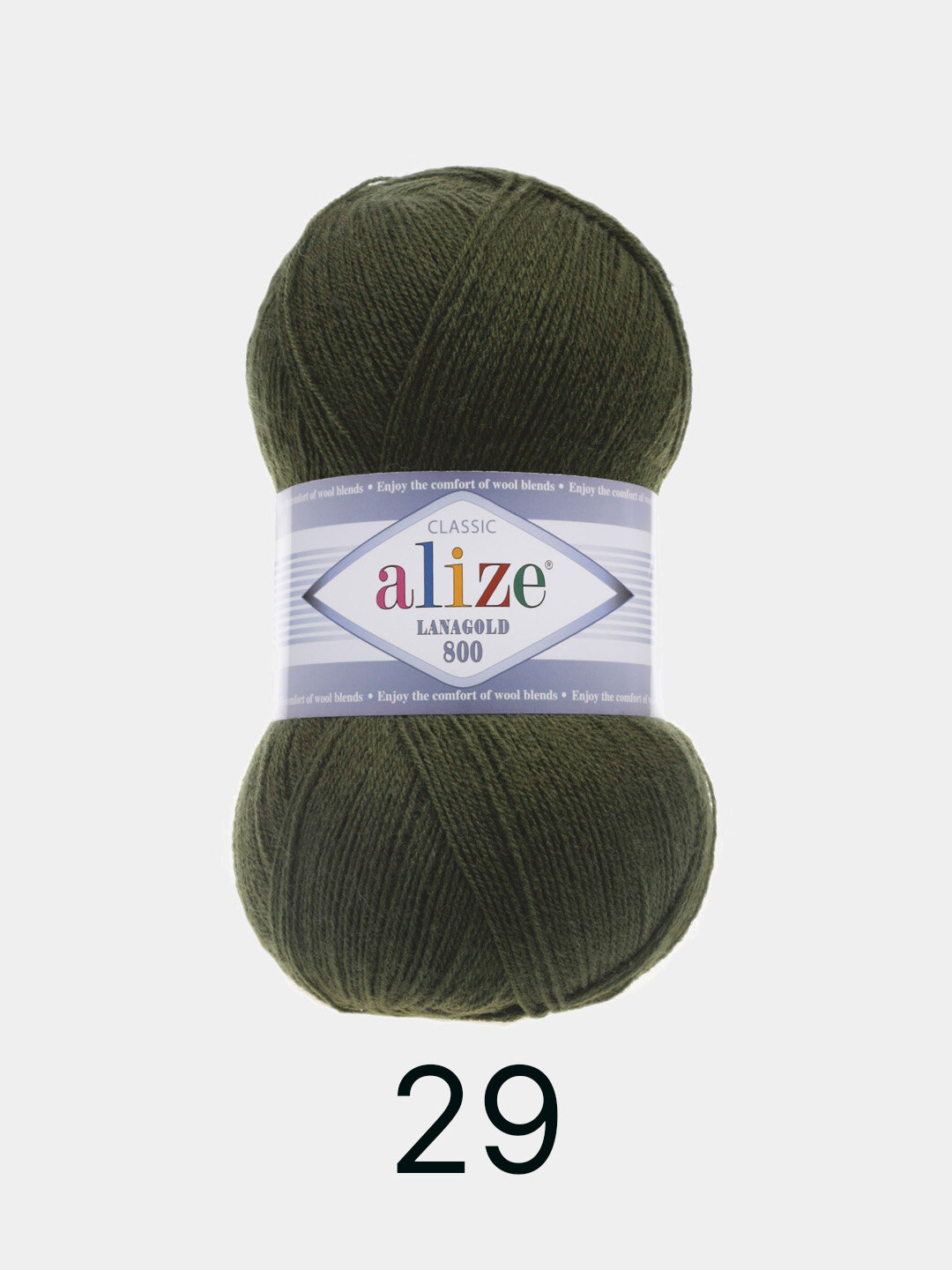 Пряжа Alize Lanagold 800 (Ланаголд 800) - 5 мотков Цвет: 29 хаки (Ланаголд 800) 49% шерсть, 51% акрил 100г 730м