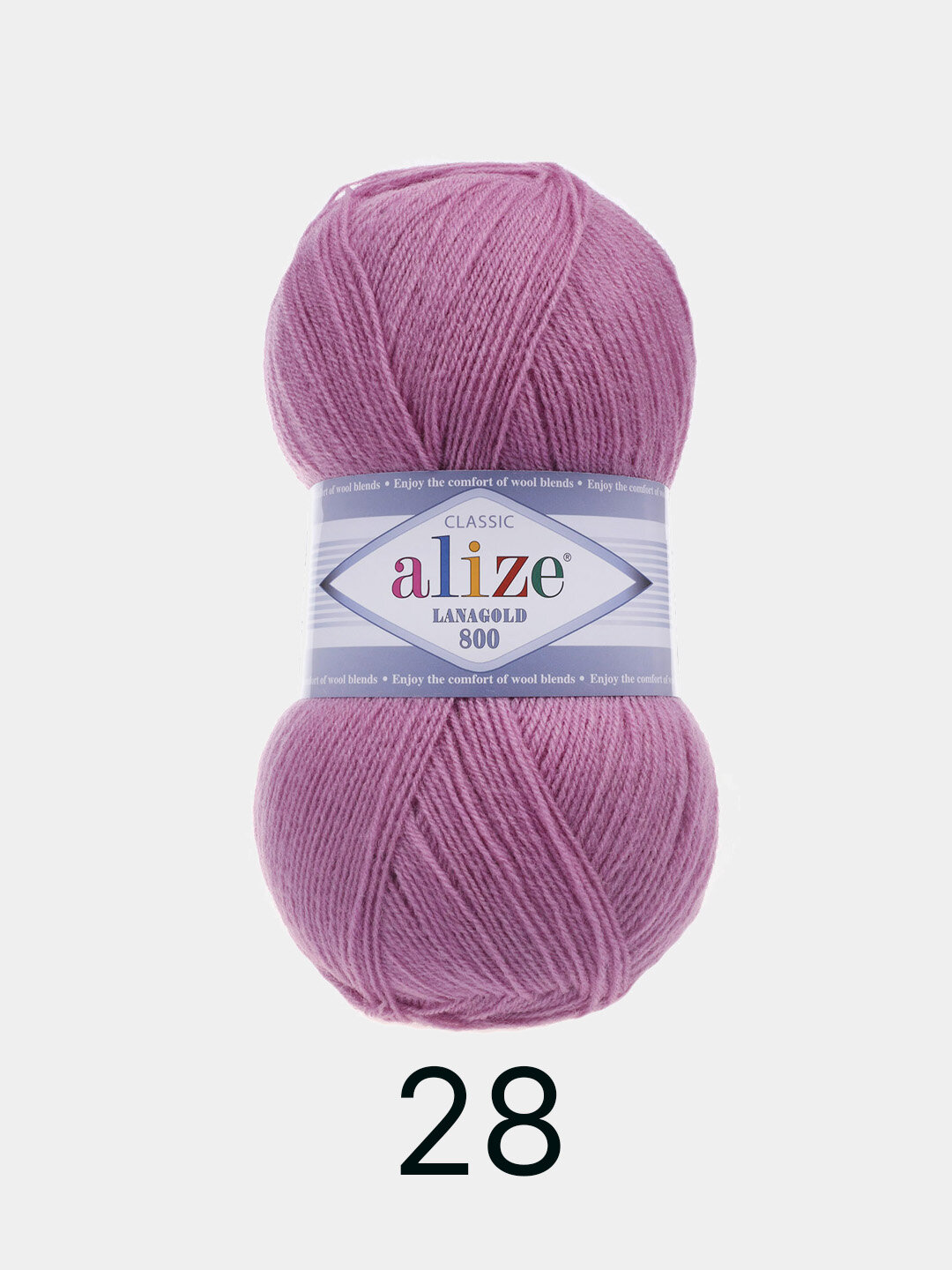 Пряжа Alize Lanagold 800 роза (28), 51%акрил/49%шерсть, 800м, 100г, 2шт