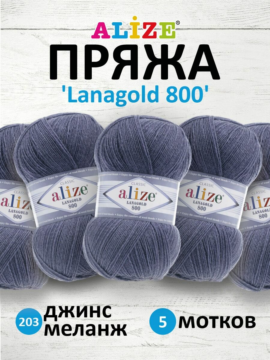 Пряжа Alize Lanagold 800 (Ланаголд 800) - 5 мотков Цвет: 203 джинс меланж (Ланаголд 800) 49% шерсть, 51% акрил 100г 730м