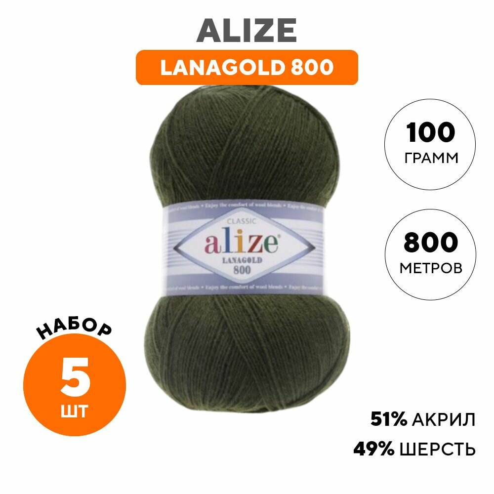 Пряжа Alize Lanagold 800 (Ланаголд 800) - 5 мотков Цвет: 29 хаки (Ланаголд 800) 49% шерсть, 51% акрил 100г 730м