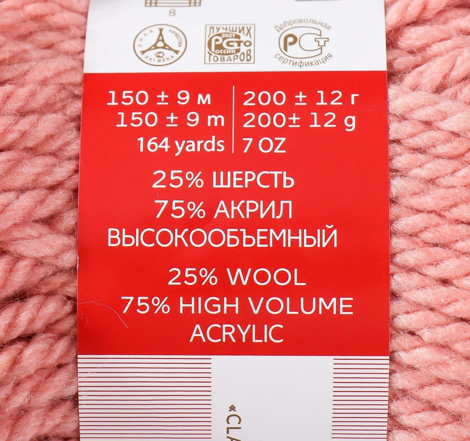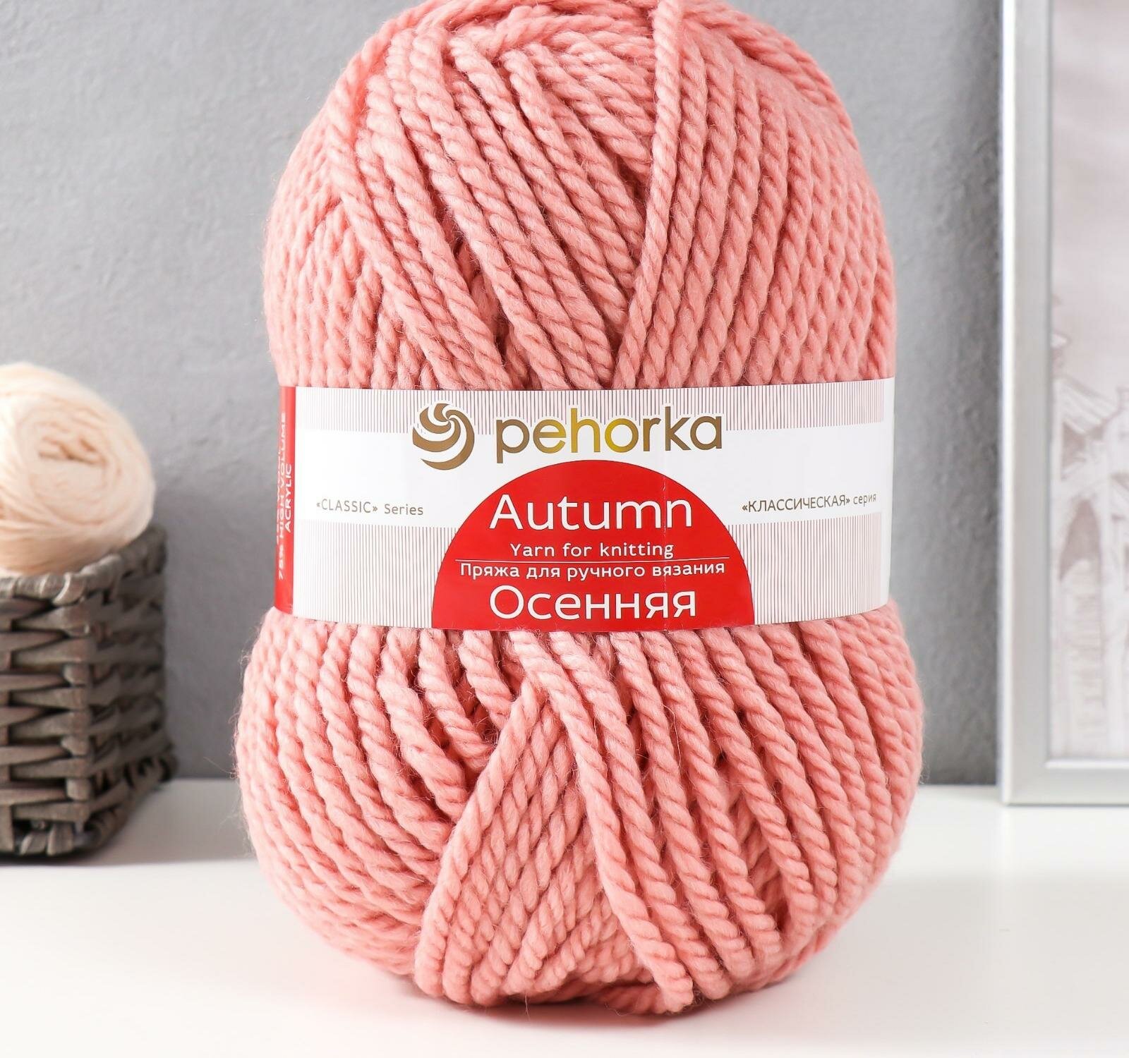 Пряжа Пехорка Осенняя коралл (058), 25%шерсть/75%акрил, 150м, 200г, 1шт