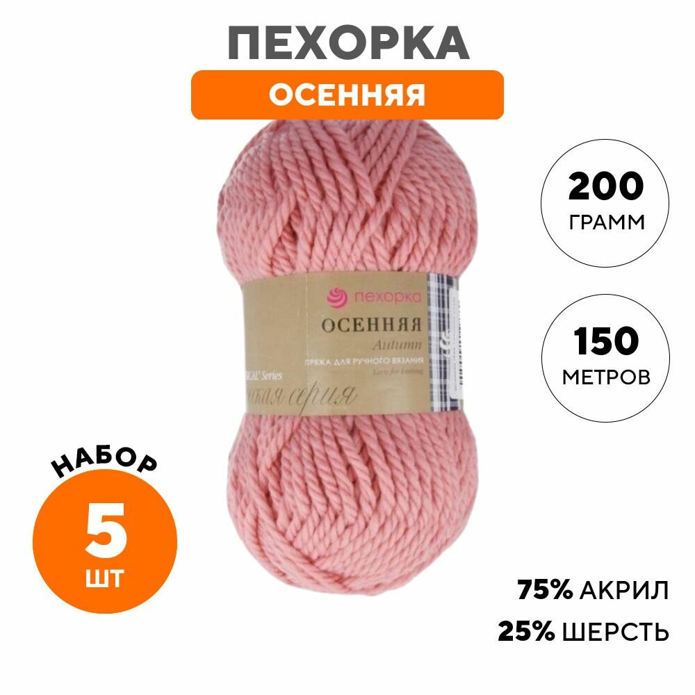 Пряжа для вязания Пехорка 'Осенняя' 200г, 150м (25% шерсть, 75% акрил) (68 чайная роза), 5 мотков