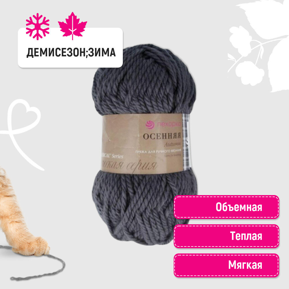 Пряжа для вязания Пехорка 'Осенняя' 200г, 150м (25% шерсть, 75% акрил) (435 антрацит), 5 мотков