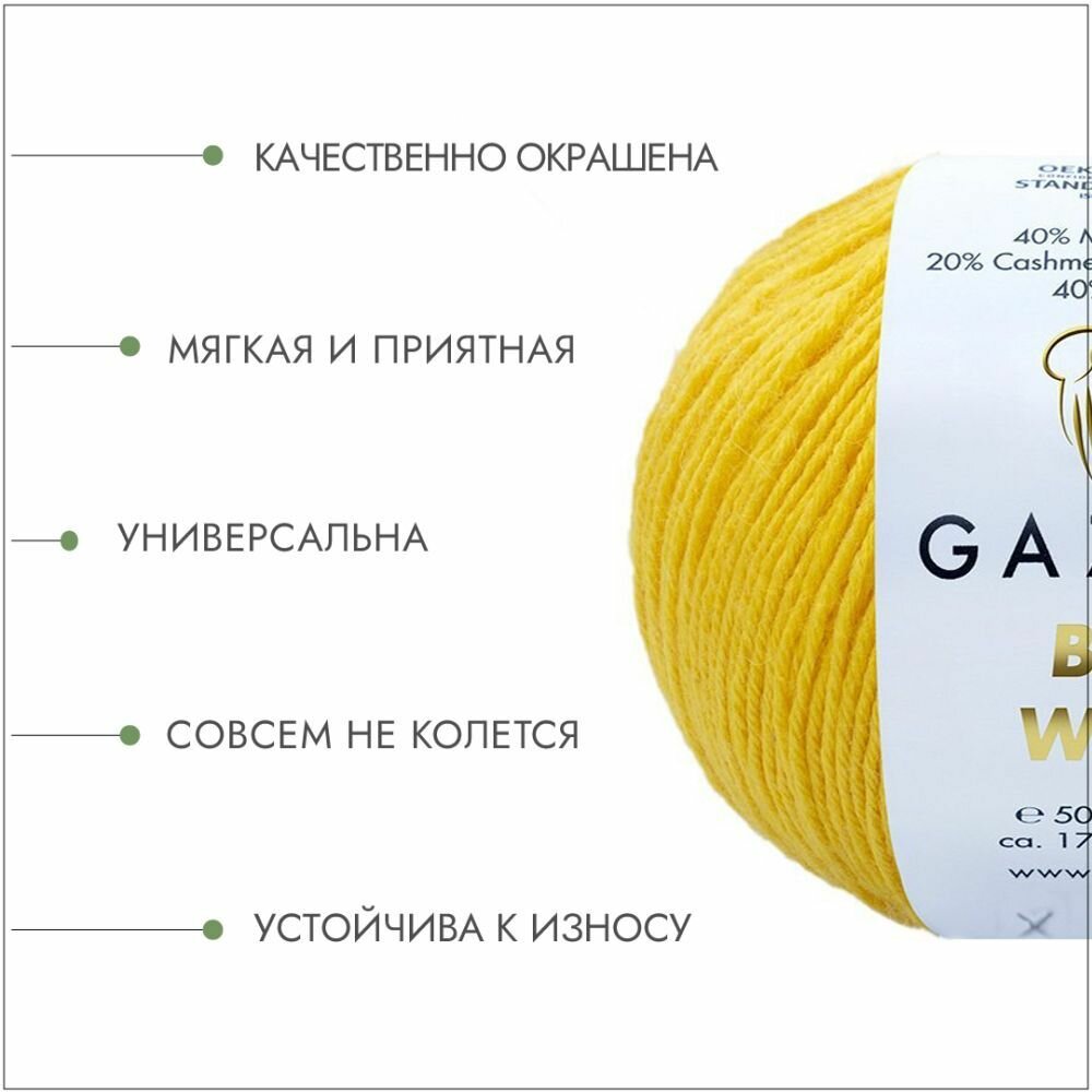 Купить Пряжа Gazzal Baby Wool желтый (812), 40%шерсть мериноса/20%кашемирПА/40%акрил, 175м, 50г, 1шт