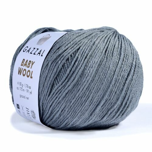 Пряжа Gazzal Baby Wool (40% Мериносовая шерсть, 20% Кашемир ПА, 40% Акрил) 50 г 175 м, 818 серый , 1 моток