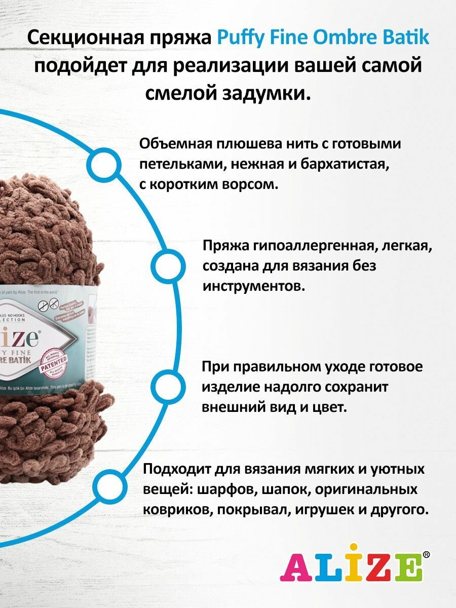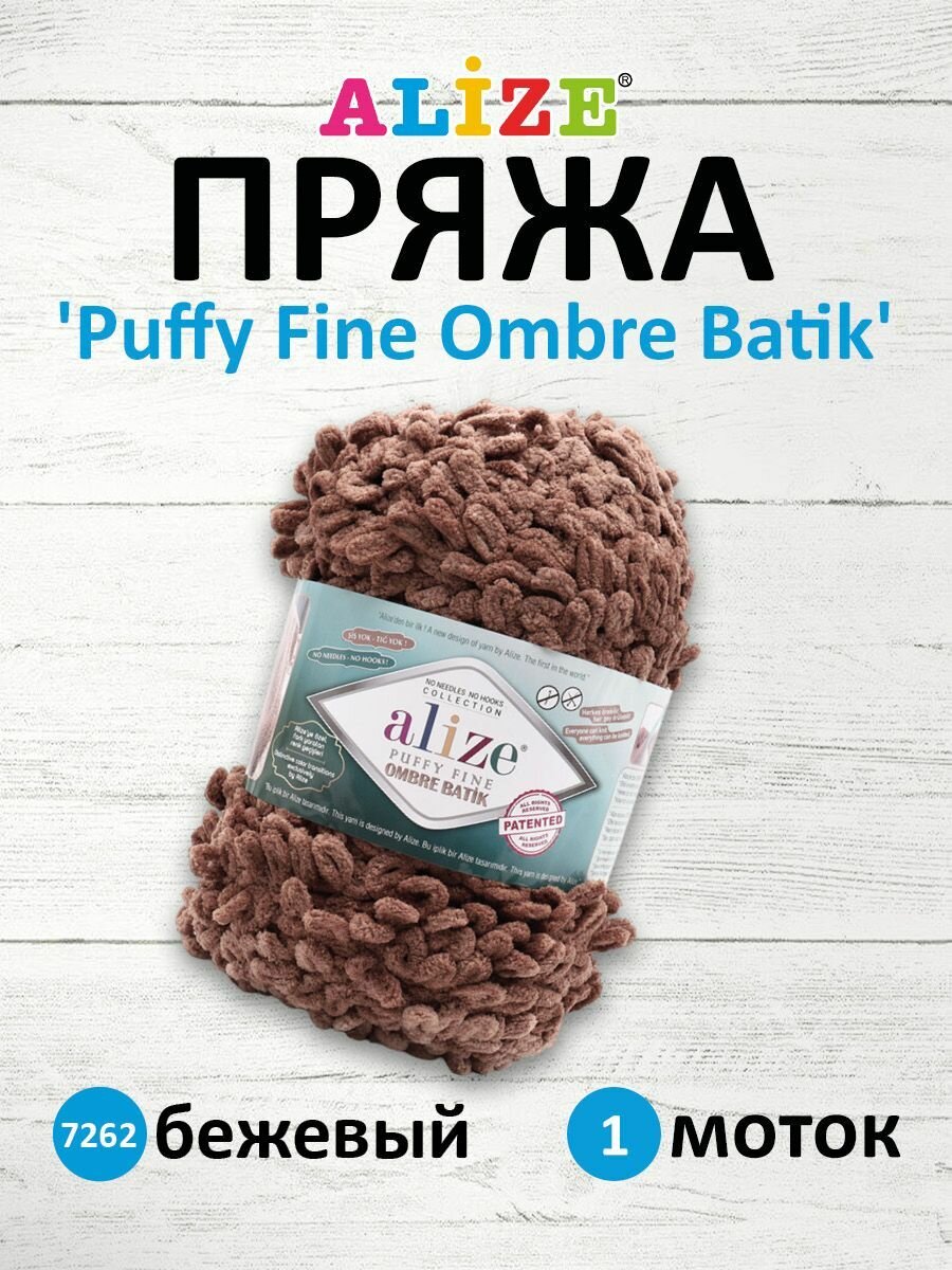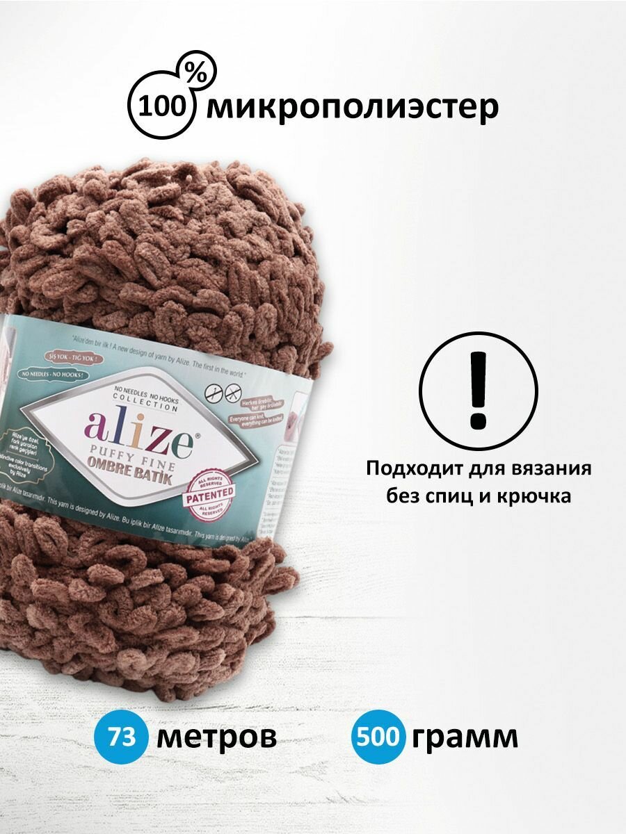 СохранитьПряжа для вязания Alize Puffy Fine Ombre Batik 7262, 500 г, 73 м, 1 штука интересное: