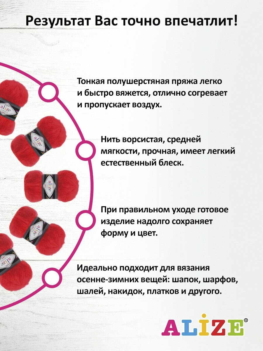 Пряжа для вязания Alize Mohair Classic New, цвет 56 красный, 100г, 200м, 5шт/упак