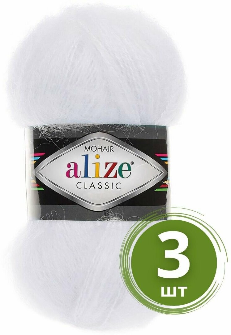 Пряжа для вязания ALIZE Mohair Classic: 55 (белый), 3 шт 200 м 100 г, 25% мохер 24% шерсть 51% акрил