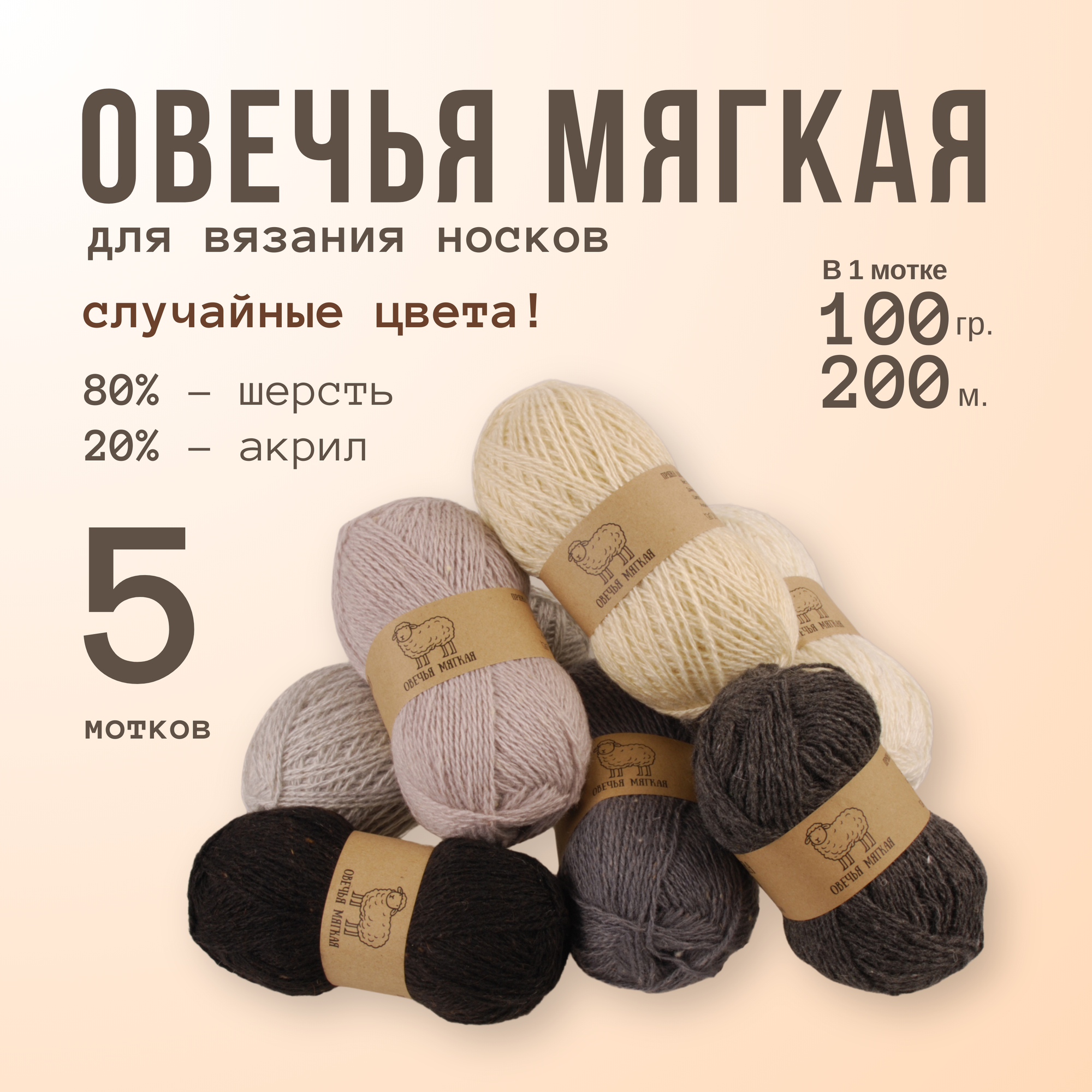 Пряжа для вязания ALPIRA "Овечья мягкая", 70% шерсть, 30% акрил, 100 г/250 м, ассорти, 5 мотков