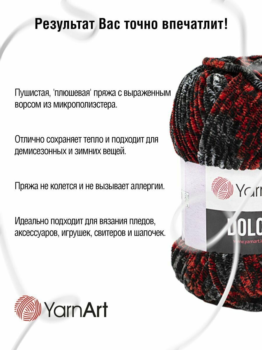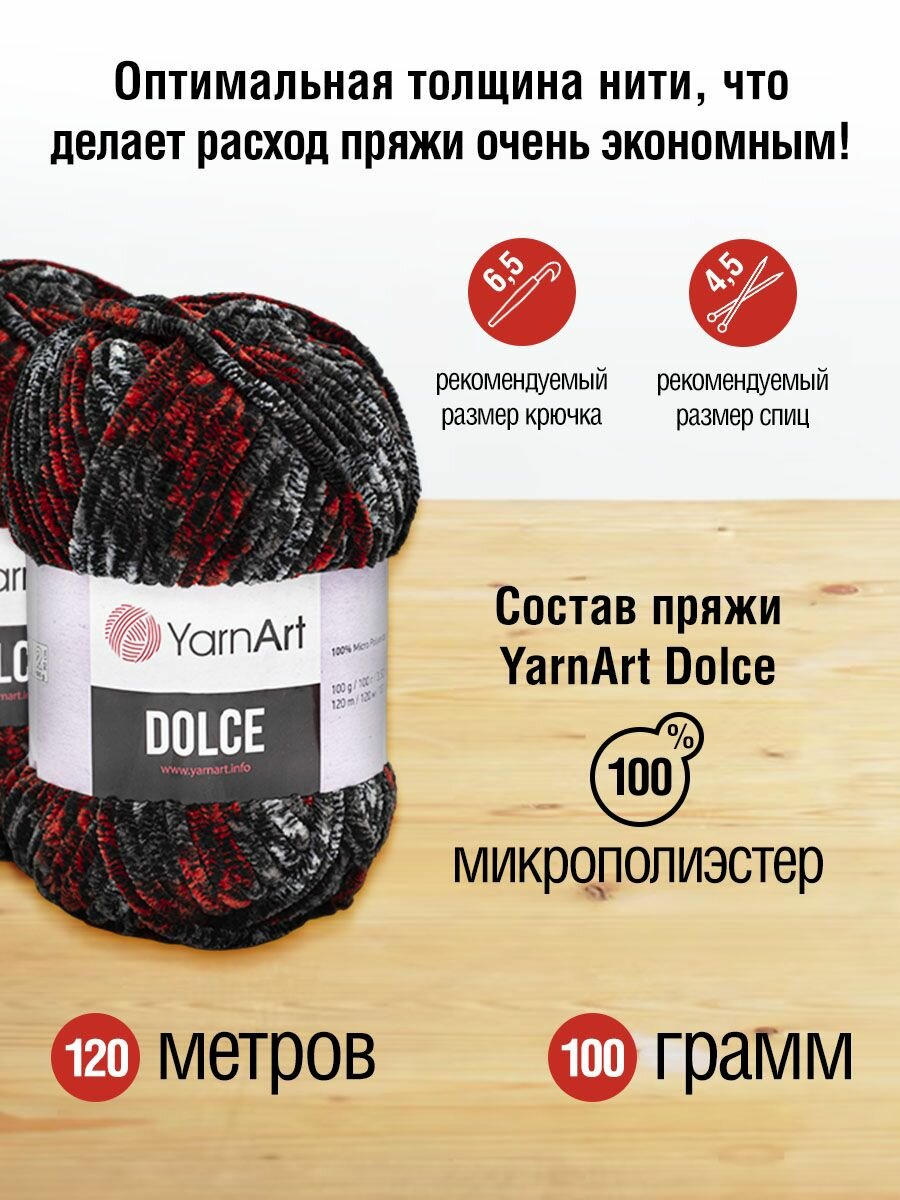 СохранитьПряжа YarnArt Dolce красный-черный-серый (806), 100%микрополиэстер, 120м, 100г, 5шт интересное: