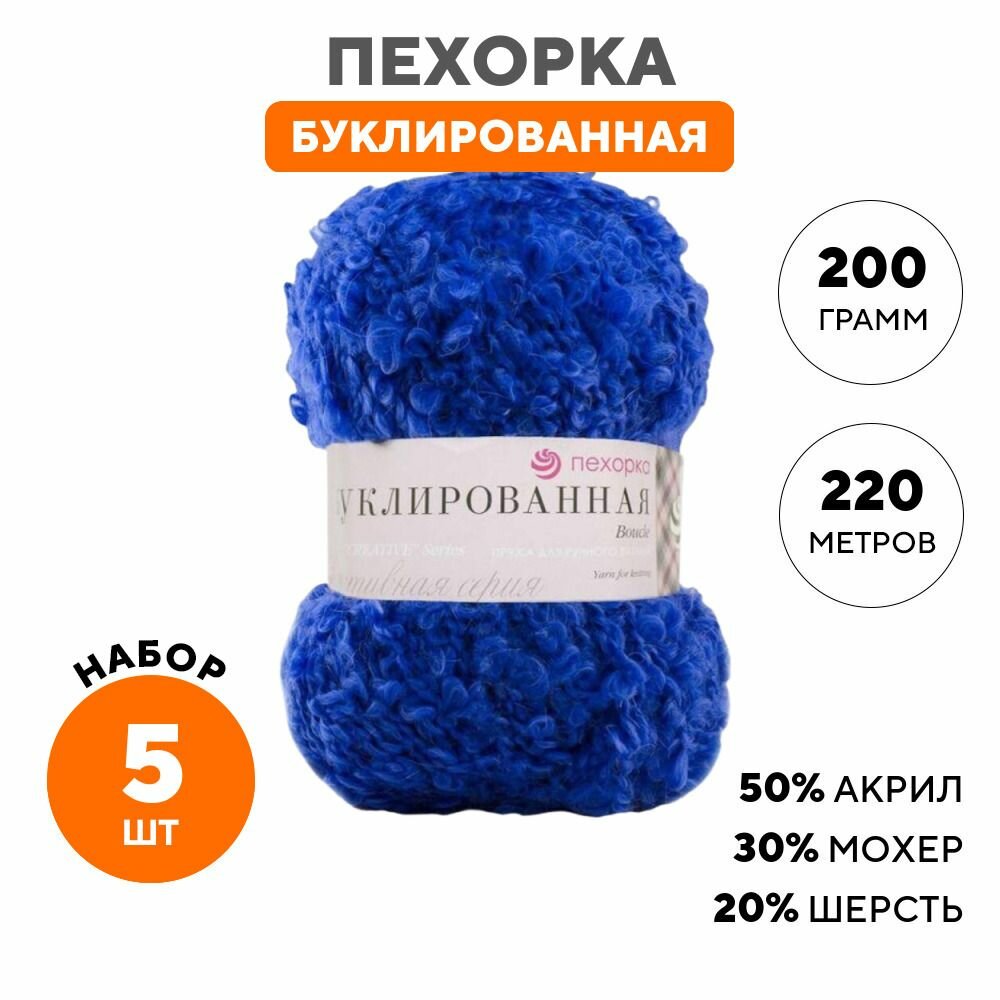 Пряжа Пехорка Буклированная цвет 26 василек (200г/220м, упаковка 5 мотков)