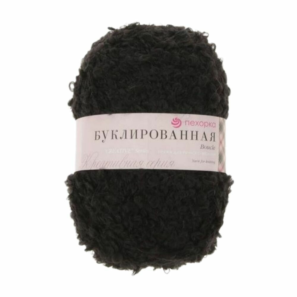 Пряжа Пехорка Буклированная Черный (02) 1 моток 200 г/220 м (30% мохер, 20% шерсть, 50% акрил) букле, pehorka boucle