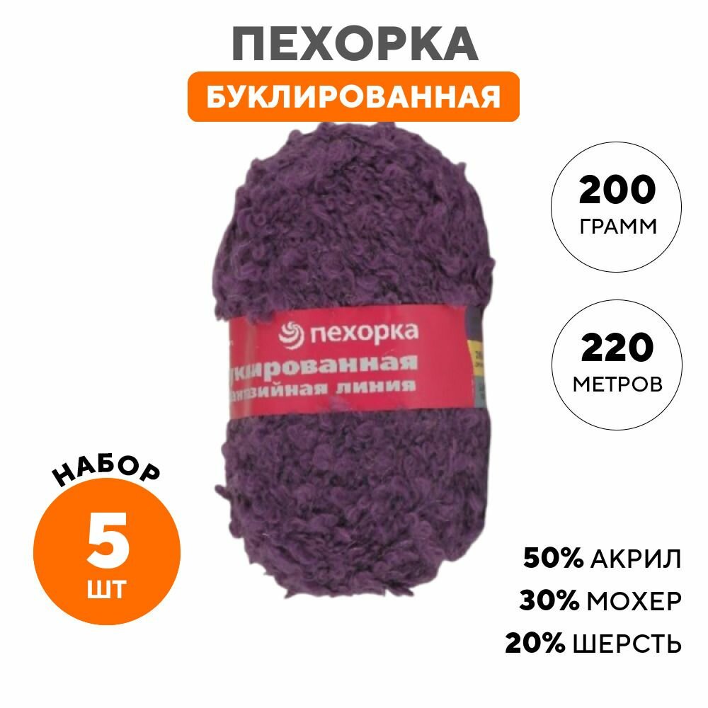 Пряжа Пехорка Буклированная цвет 191 ежевика (200г/220м, упаковка 5 мотков)