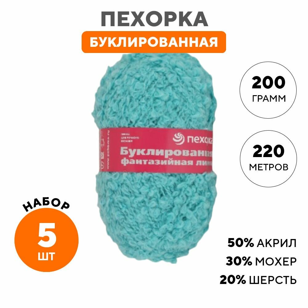 Пряжа Пехорка Буклированная цвет 95 океан (200г/220м, упаковка 5 мотков)