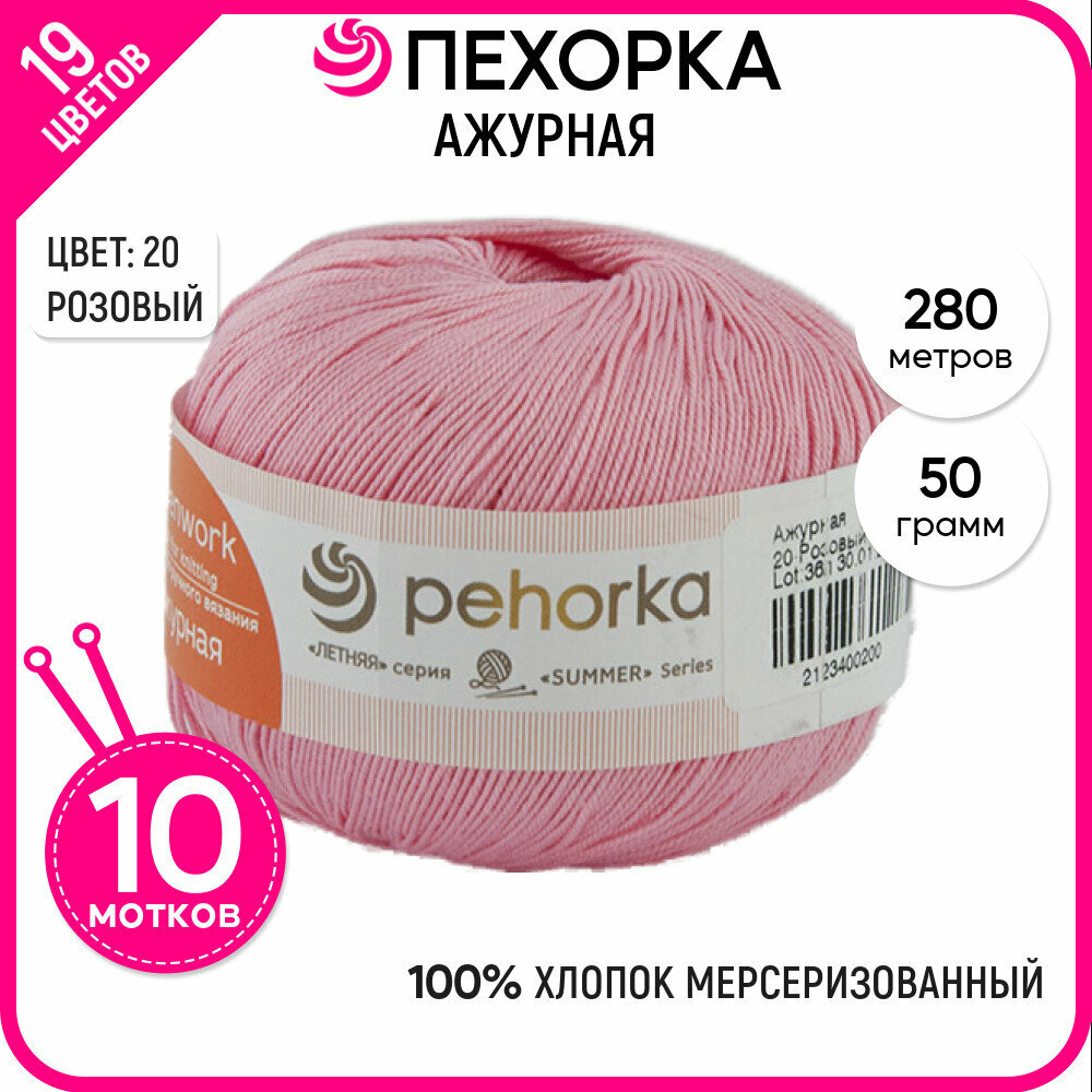 Купить Пряжа для вязания Пехорка 'Ажурная', 50г, 280м (100% мерсеризованный хлопок) (20 розовый), 10 мотков