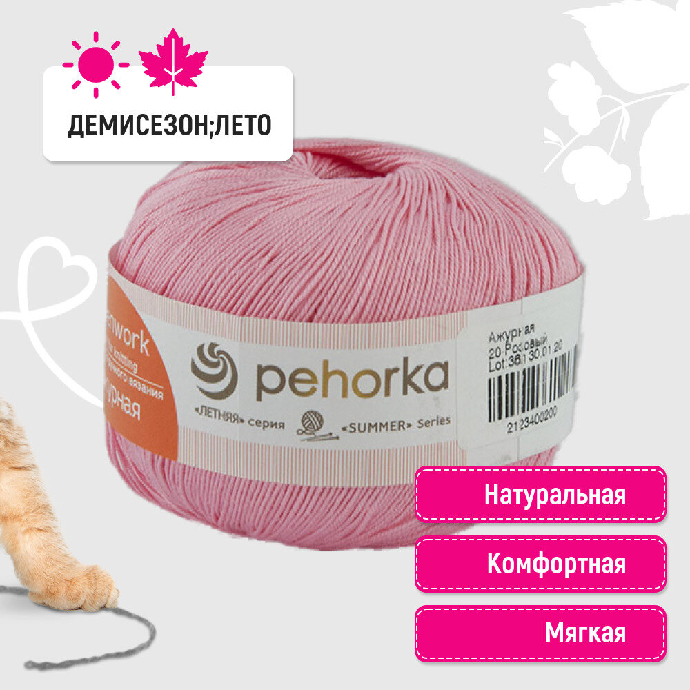 СохранитьПряжа для вязания Пехорка 'Ажурная', 50г, 280м (100% мерсеризованный хлопок) (20 розовый), 10 мотков интересное: