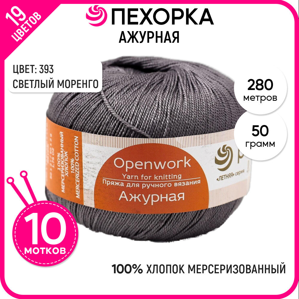 Пряжа Пехорка, Pehorka Ажурная, средняя, хлопок мерсеризованный 100%, цвет 393, светлый моренго, 10 шт. по 50 г, 280 м